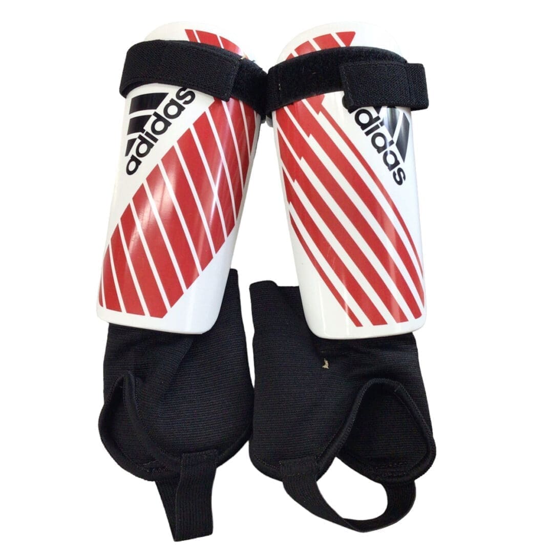 Shinguard with hard shell and adjustable guard width and ankle protection.