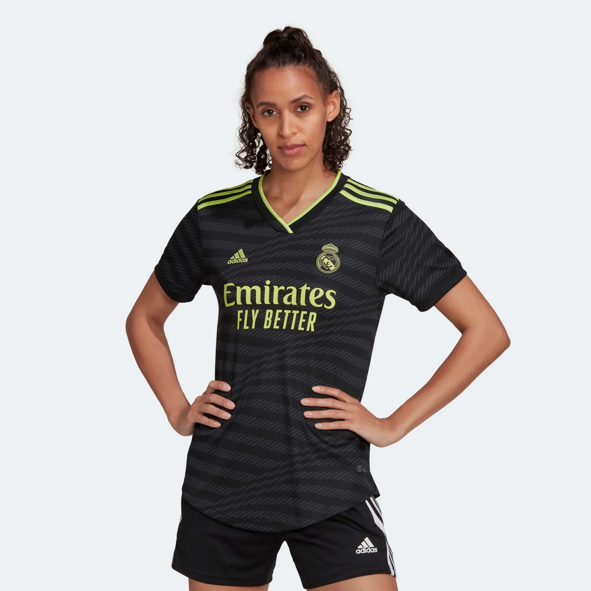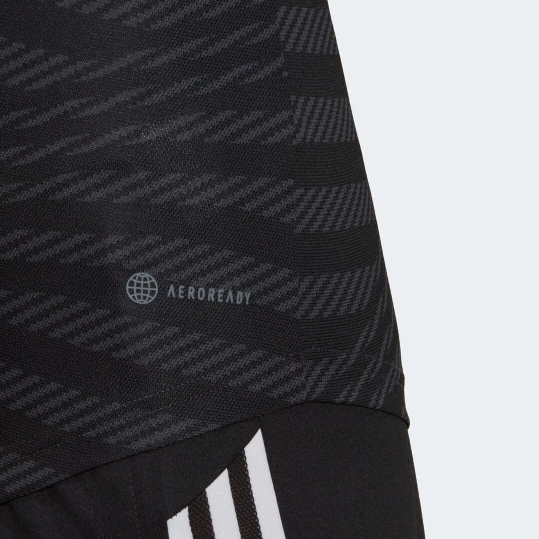 Undulating lines follow the gradients of the stadium’s sweeping curves, and the lime green, embroidered details incorporate a metallic effect that’s inspired by the stadium’s silvery exterior. Created to keep soccer fans comfortable, this shirt has moisture-wicking AEROREADY and mesh panels. Made with 100% recycled materials, this product represents just one of our solutions to help end plastic waste.