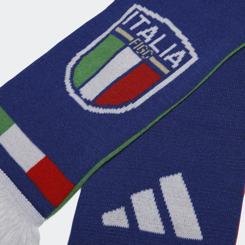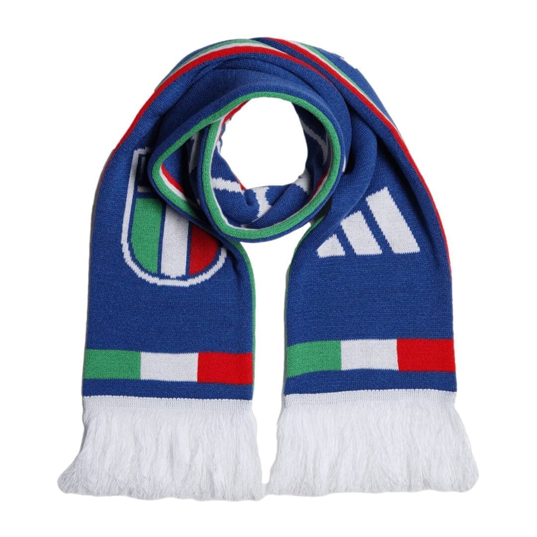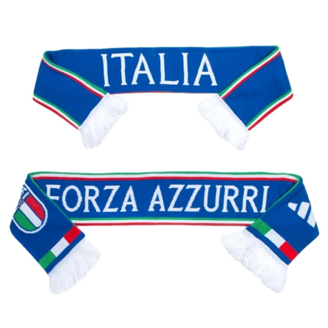 Follow Italy in traditional football style. This adidas scarf includes the team’s famous name on one side and a “Forza Azzurri” message on the other.