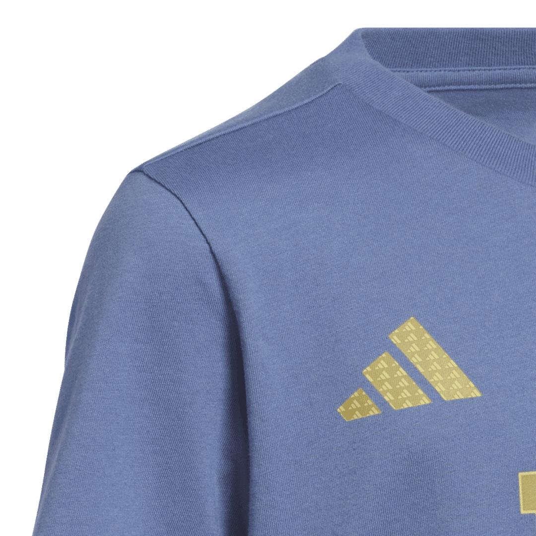 Made from soft, breathable cotton, this tee delivers everyday comfort and showcases true fan pride. Featuring Lionel Messi’s name and number on the back and the adidas Badge of Sport on the front, it’s perfect for young fans who want to represent their hero in style—on the pitch or off.