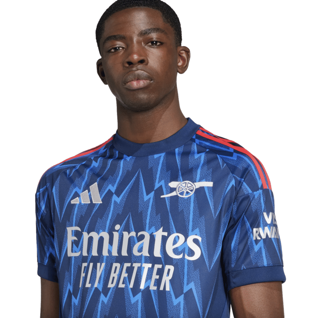 Flashback through Arsenal's history and you'll see the lightning bolt has been a fixture. This adidas soccer jersey brings the iconic motif back with a bang thanks to a thoroughly modern light-blue-and-navy all-over print. Moisture-managing AEROREADY and soft interlock fabric ensure fans stay comfortable while they back their beloved club.