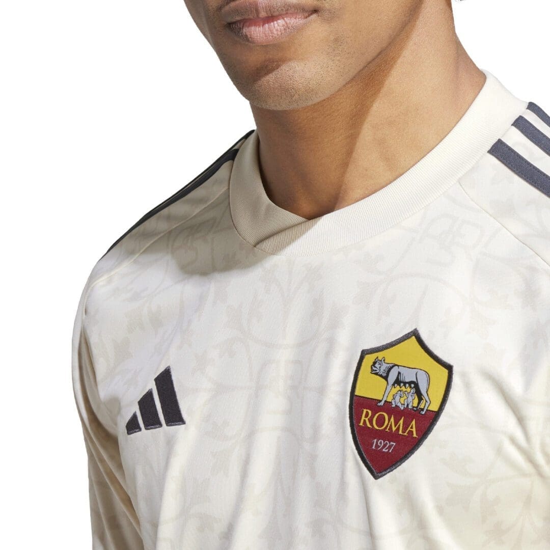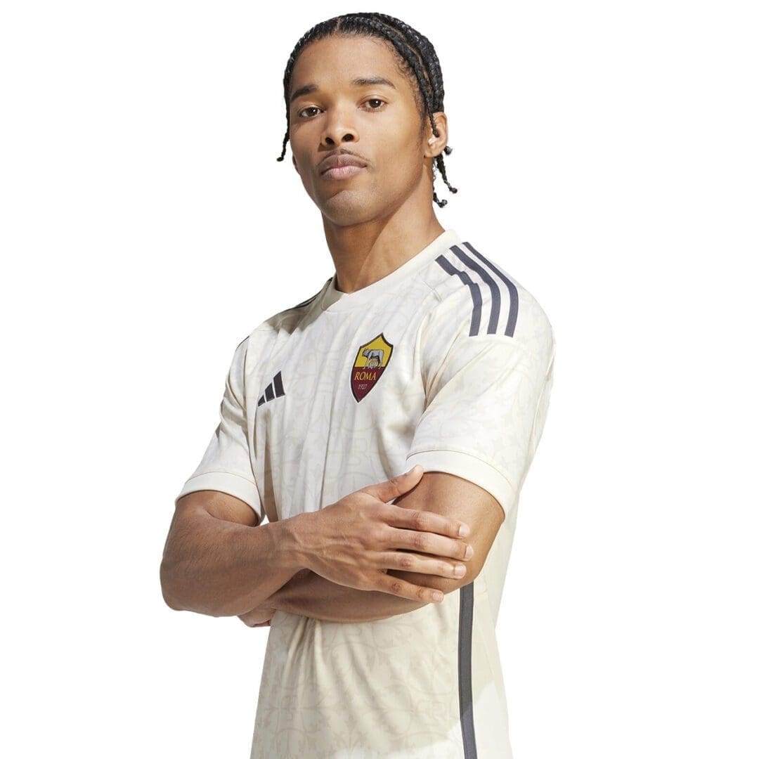 Created for players and fans alike, the AS Roma 23/24 Away Jersey includes sweat-wicking AEROREADY to help keep you feeling dry — on and off the pitch. An embroidered crest shows your soccer pride will stand the test of time. Made with 100% recycled materials, this product represents just one of our solutions to help end plastic waste.