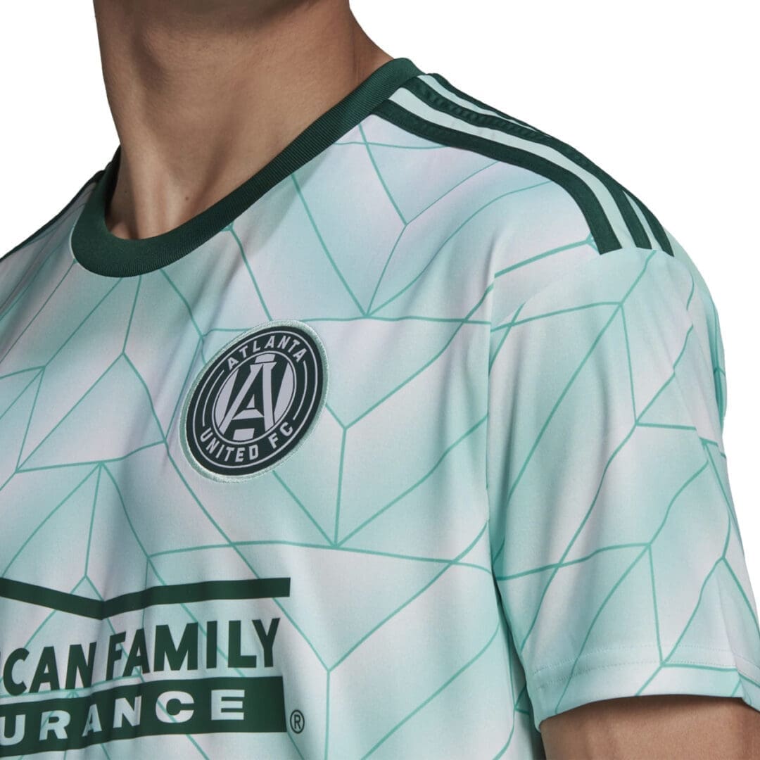 Celebrate the city in the forest. This adidas Atlanta United FC away jersey takes inspiration from Atlanta’s leafy skyline with green shades and a geometric design that’s steeped in soccer history.