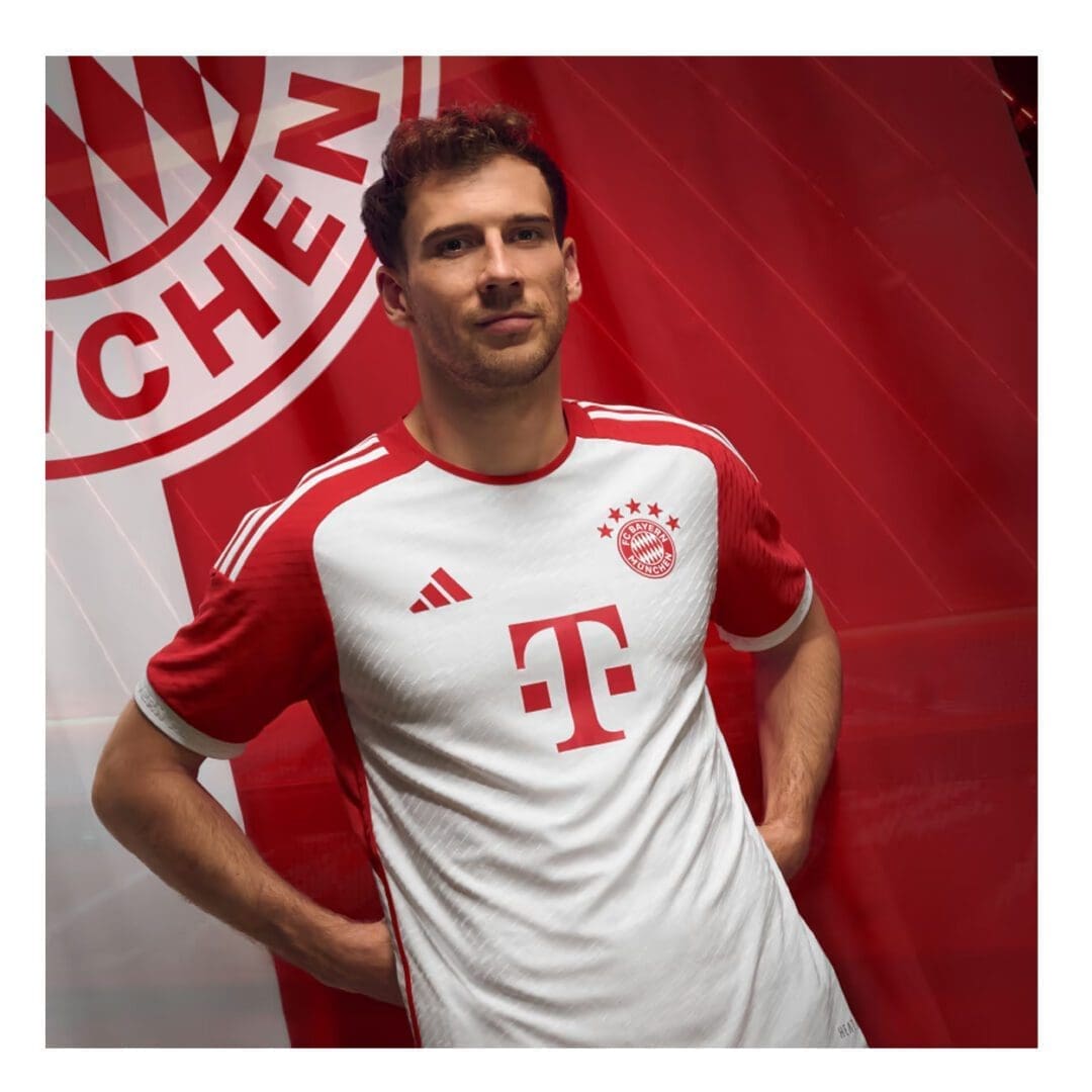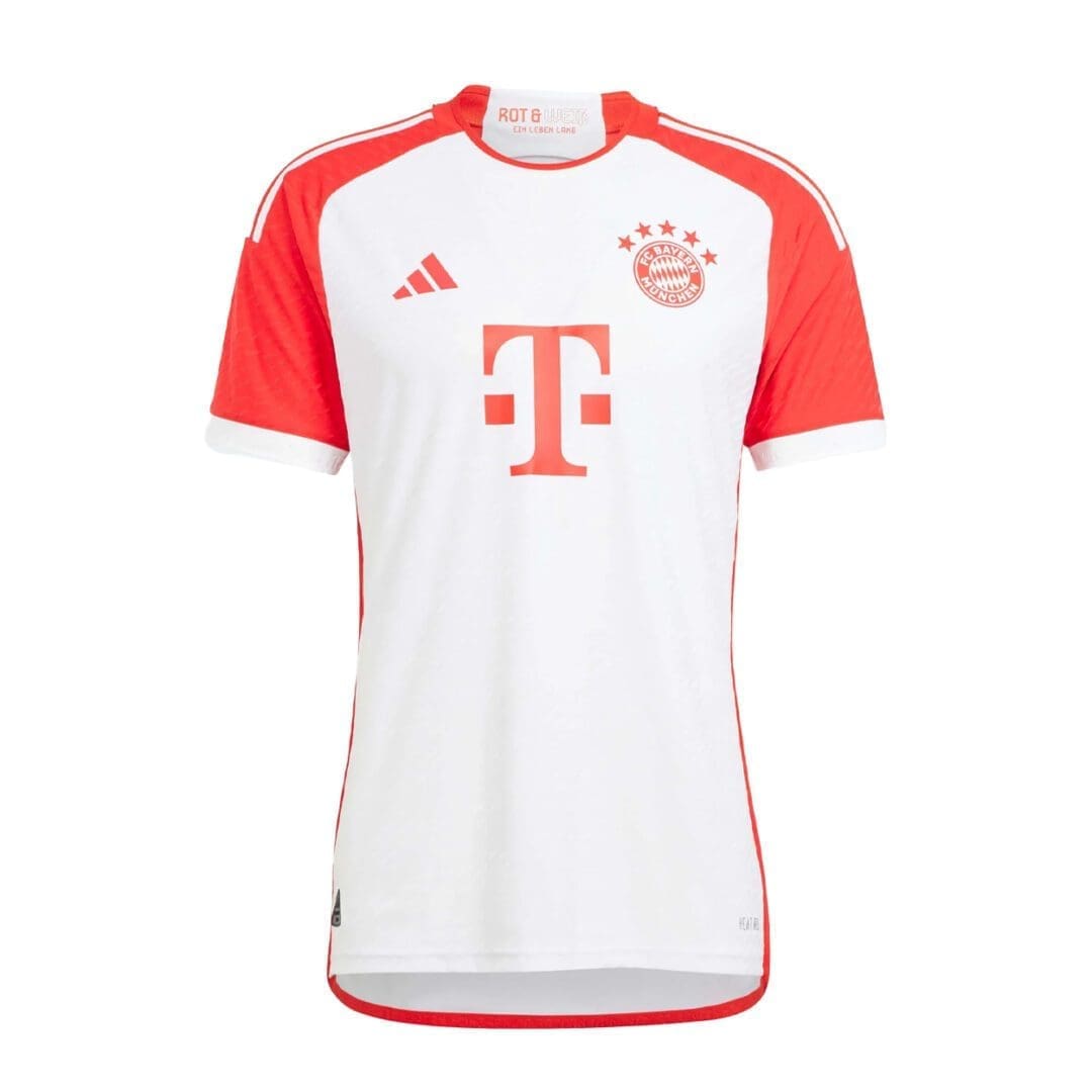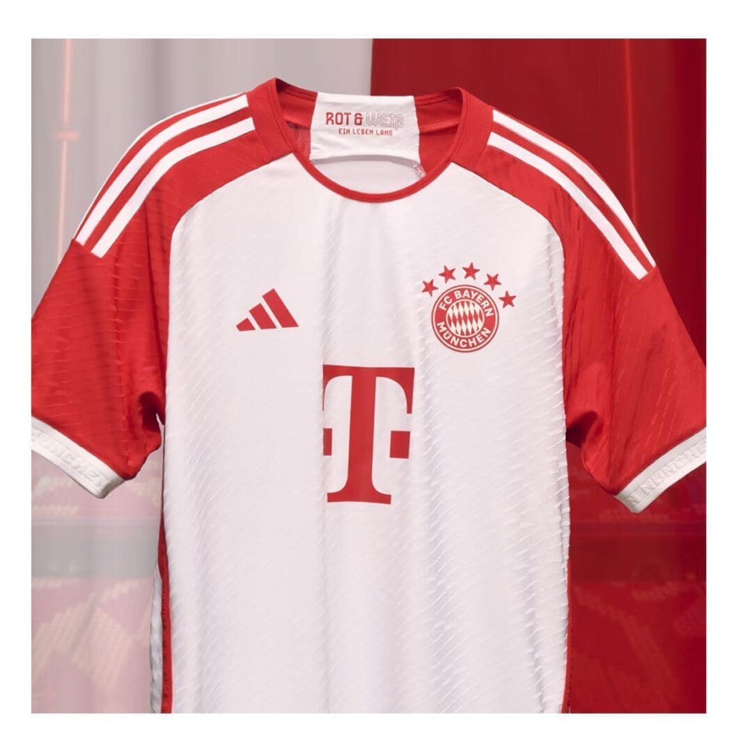 - "FC Bayern München" on ribbed cuffs and back