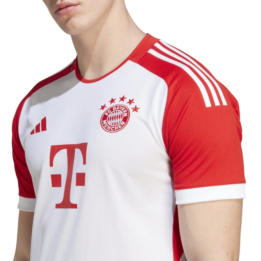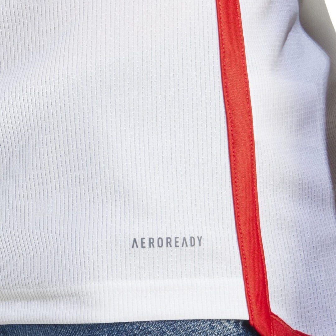 The first full red and white kit for 30 years, it brings a nostalgic yet fresh twist to a team famed for its football consistency. Cut for a close fit, the jersey is crafted entirely from 100% recycled polyester double knit and finished with a premium ribbed crewneck. Behind the scenes, moisture-wicking AEROREADY fabric helps to keep you feeling comfortable whether you’re headed for the grandstands or the pitch. Flash your homegrown pride thanks to the embossed FC Bayern München logo, ‘Mia San Mia’ signoff at the back and embroidered crest.