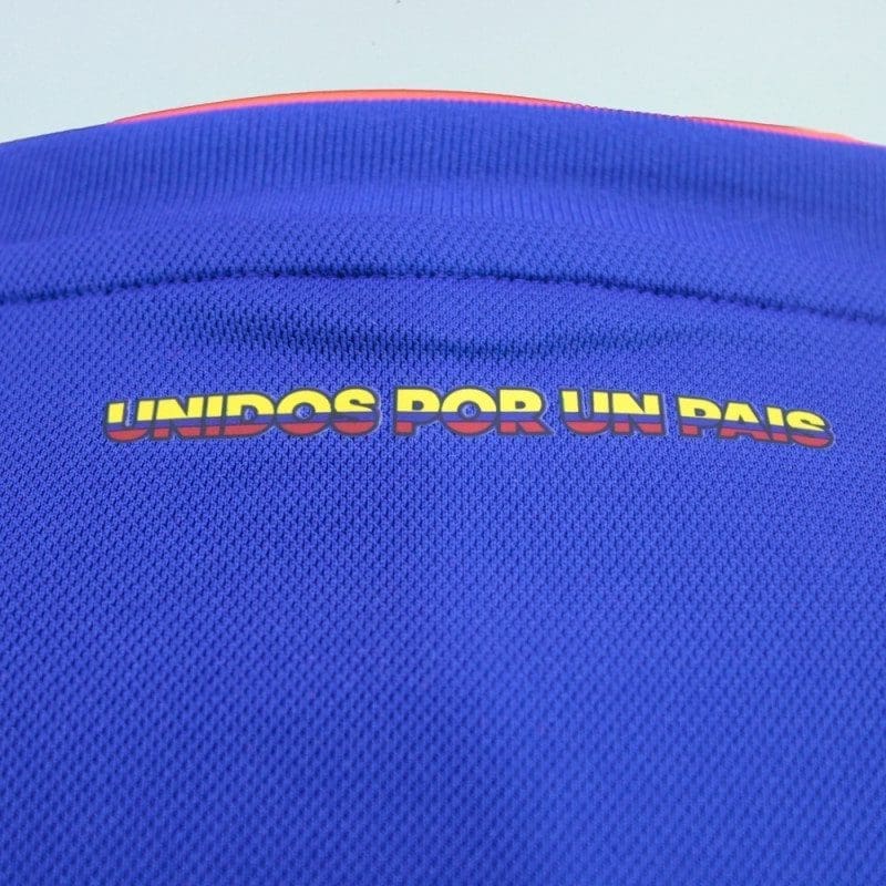 - The words “Unidos por un Pais” are displayed below the back of its ribbed V-neck collar.