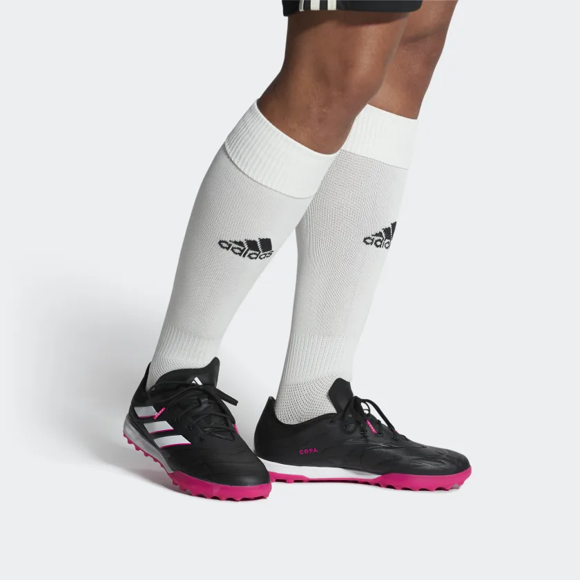 Easy to get into, the lightweight upper on these soccer shoes includes a quilted leather forefoot for cushioned touches. Underneath, a lug rubber outsole keeps you classy on artificial turf courts.