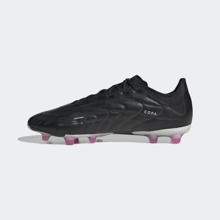 Designed to prioritize comfort and precision, these lightweight cleats offer undiluted performance and a flawless touch on the ball. Drawing inspiration from Copa's rich heritage, they feature a soft Fusionskin leather forefoot seamlessly blended with an adaptive textile collar for locked-in comfort during playmaking. The specialist outsole ensures stability and class on dry natural grass pitches.