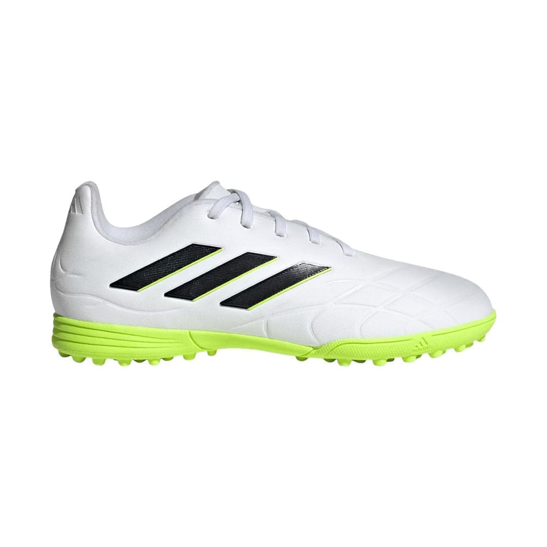 Roll back the years in juniors’ football boots designed to look and feel iconic. Their soft, synthetic leather forefoot and specialist outsole work together to give you silky-smooth touches on artificial turf pitches. Borrowing from Copa’s rich heritage, a contrast heel blinker takes centre stage amongst an array of subtle details.