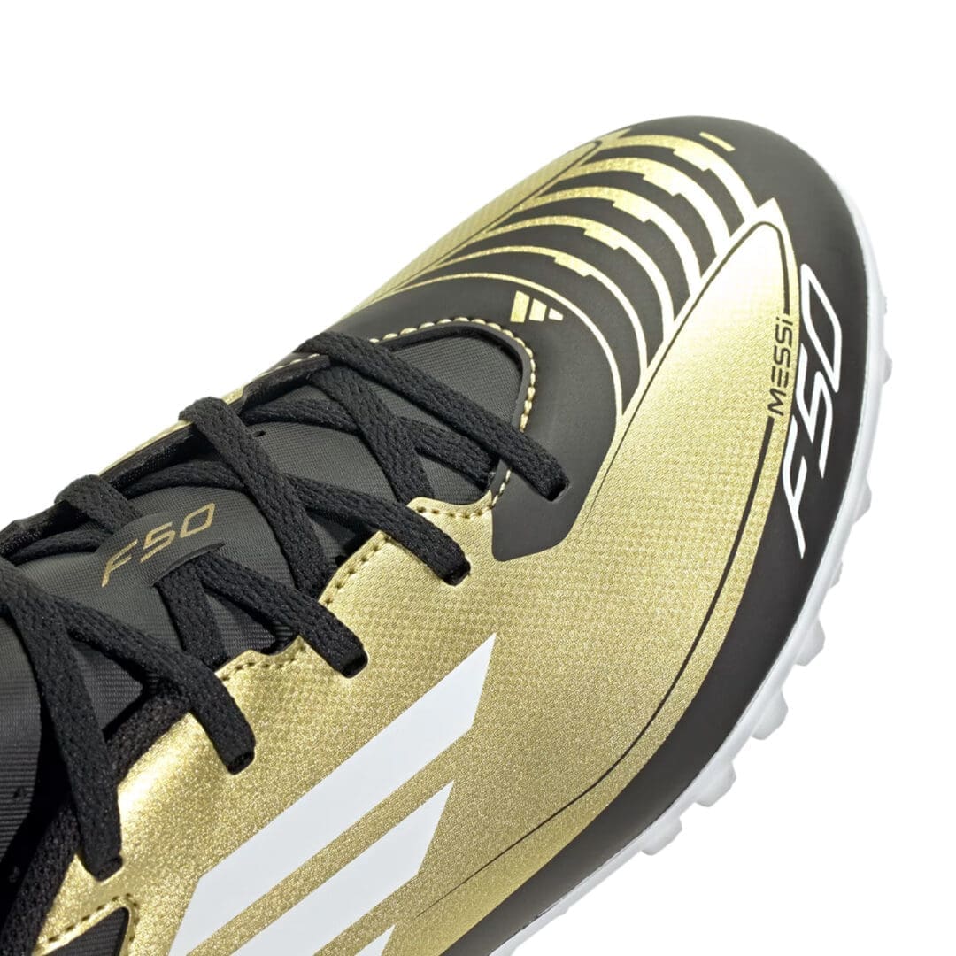 The flexible HybridTouch upper of these F50 League boots includes a synthetic tongue for lightweight comfort. Below, a lugged rubber outsole adds responsiveness on artificial turf. This product contains at least 20% recycled materials. By reusing materials that have already been created, we help reduce waste and our dependence on finite resources and reduce the footprint of the products we make.