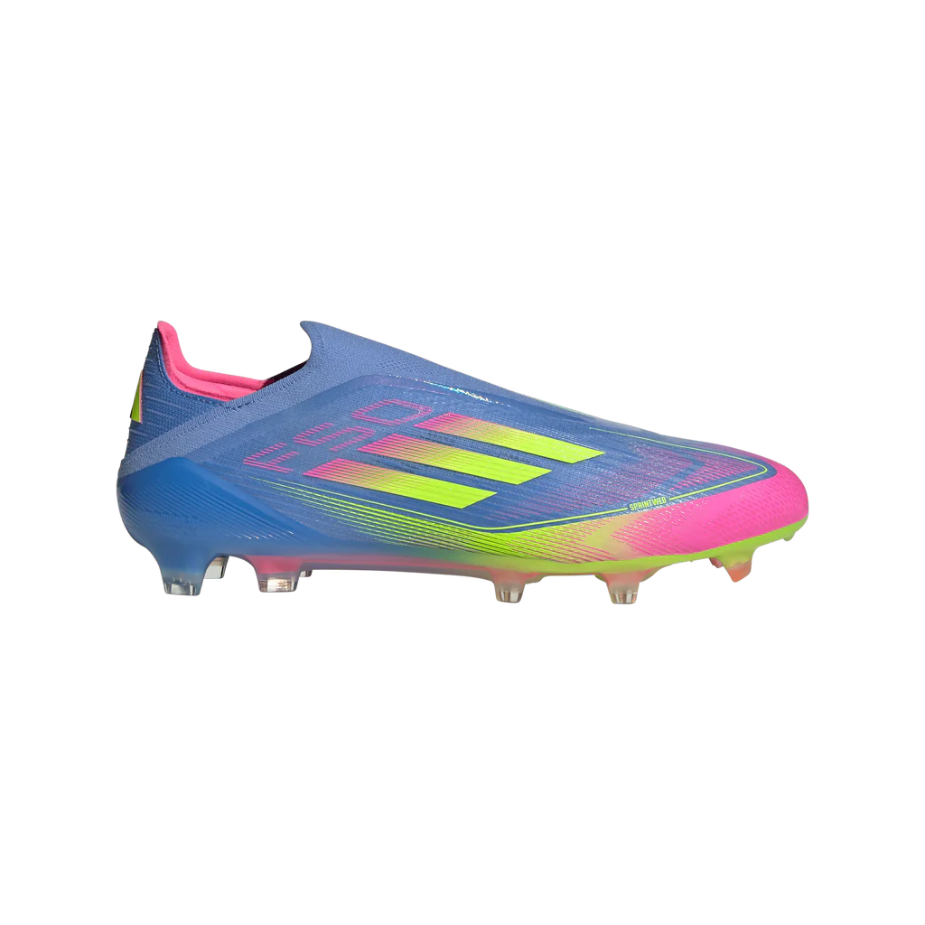 Elevate your game with these high-performance laceless firm ground cleats in a bold blue colorway. Designed for serious athletes, these cleats combine innovation and sleek aesthetics to help you dominate on the pitch. The laceless construction ensures a clean strike zone for better ball control, while the lightweight build maximizes speed without compromising stability. Whether you’re sprinting down the wing or making sharp turns, these cleats offer the traction and responsiveness you need to stay ahead of the competition.