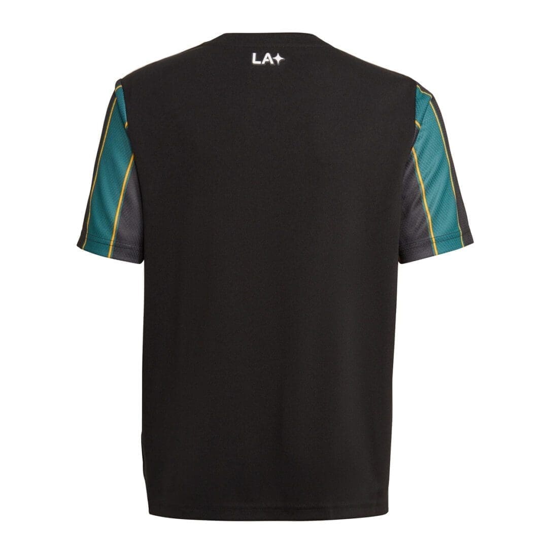 The vertical bars and gold details echo the team’s late-’90s look. The moisture-wicking AEROREADY has a slight honeycomb texture and super-soft feel. An LA sign-off decorates the back neck.