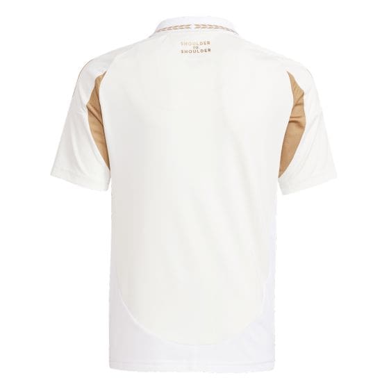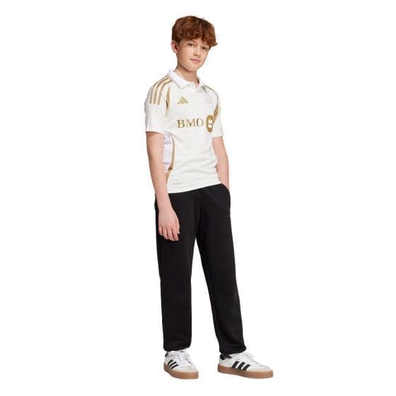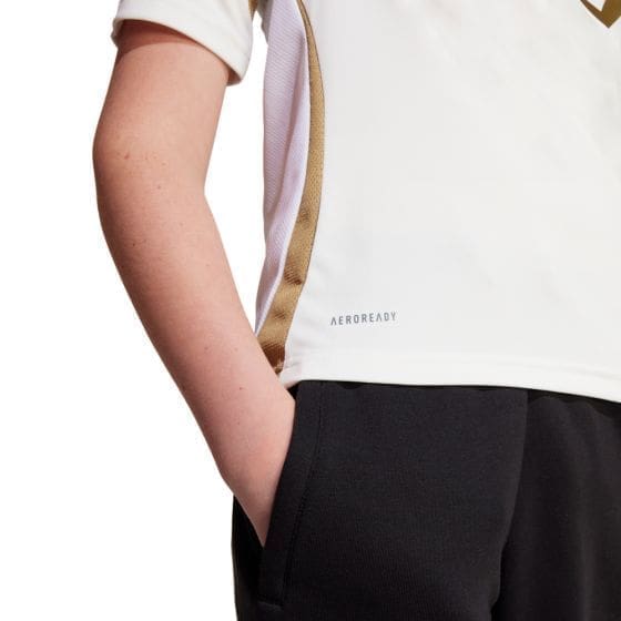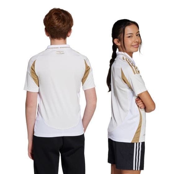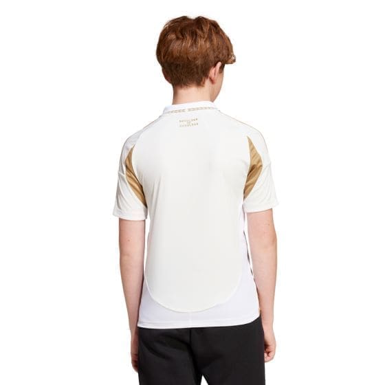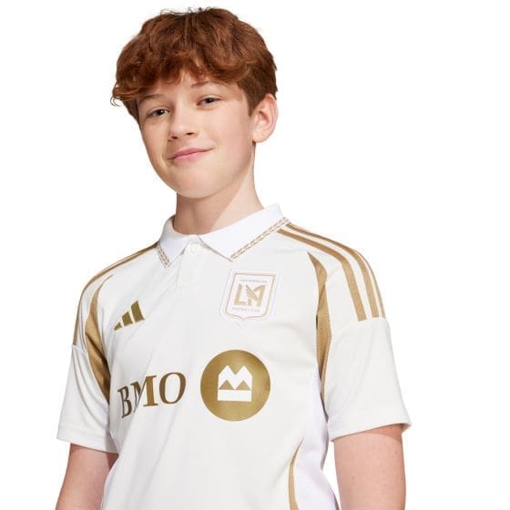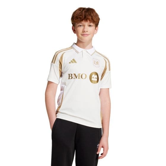 Elevate your support for LAFC with the adidas Los Angeles 2025/26 Youth Away Jersey. A symbol of ambition, class, and the team’s relentless pursuit of greatness. Inspired by the club’s first-ever Community jersey, this refined white and gold design features subtle pinstripes and a stylish polo collar, embodying the spirit of an aspirational city and a dominant team. Crafted by adidas, AEROREADY technology keeps young fans cool and comfortable, while the sewn-on badge and club sign-off showcase unwavering pride. This jersey represents LAFC?s determination to reign supreme, whether in the stands or on the field.