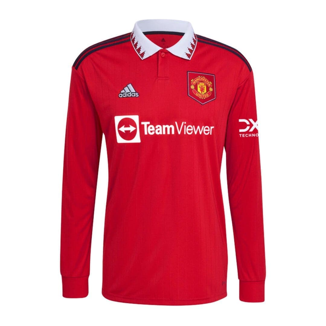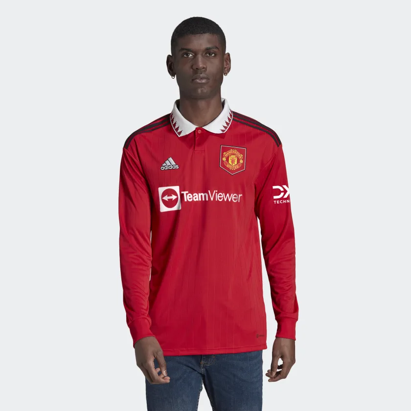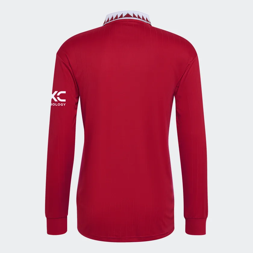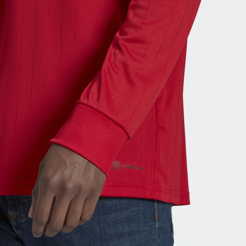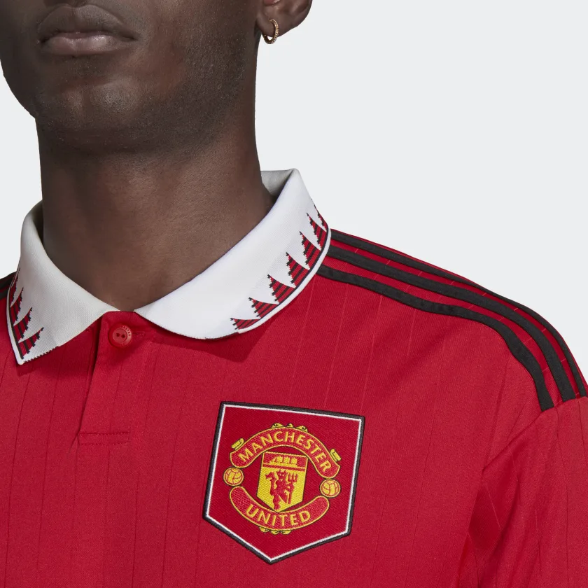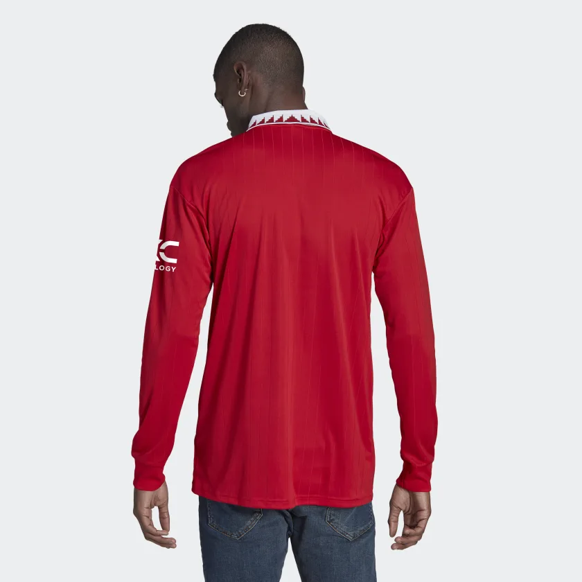 Turned up or pressed down, the humble polo collar has played a starring role in many of Manchester United’s biggest moments. Making a comeback on this adidas soccer jersey, it joins a shield-style badge and engineered pinstriped print to produce an eye-catching look. Long sleeves and moisture-absorbing AEROREADY keep you covered and comfortable.