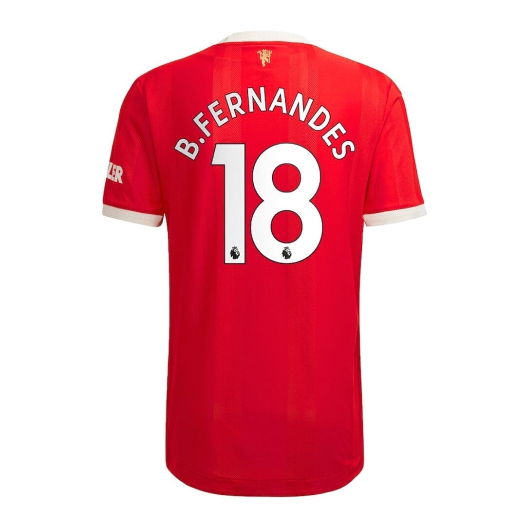 B. Fernandes #18 Manchester United Authentic Jersey season 2021/22. Red with a white ribbed crewneck, this adidas home jersey echoes their iconic kit.