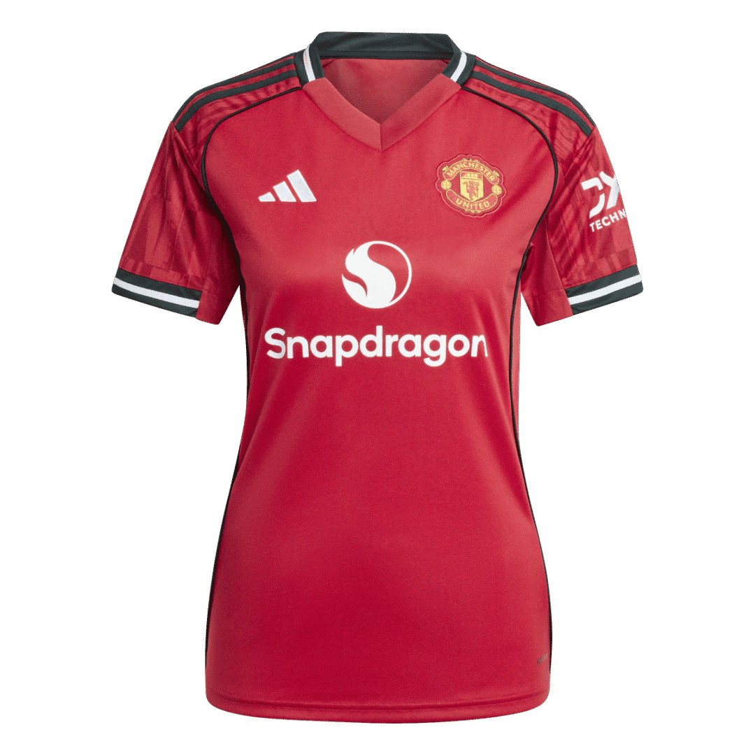 This official Manchester United Home Women’s Soccer Jersey for the 25/26 season is a must-have for any supporter. Crafted with premium lightweight fabric, it offers excellent breathability to keep you cool whether on the field or in the stands. The vibrant red design showcases the iconic club crest proudly on the chest along with authentic sponsor detailing, ensuring a genuine look. Its tailored fit is designed specifically for women, providing comfort and freedom of movement.