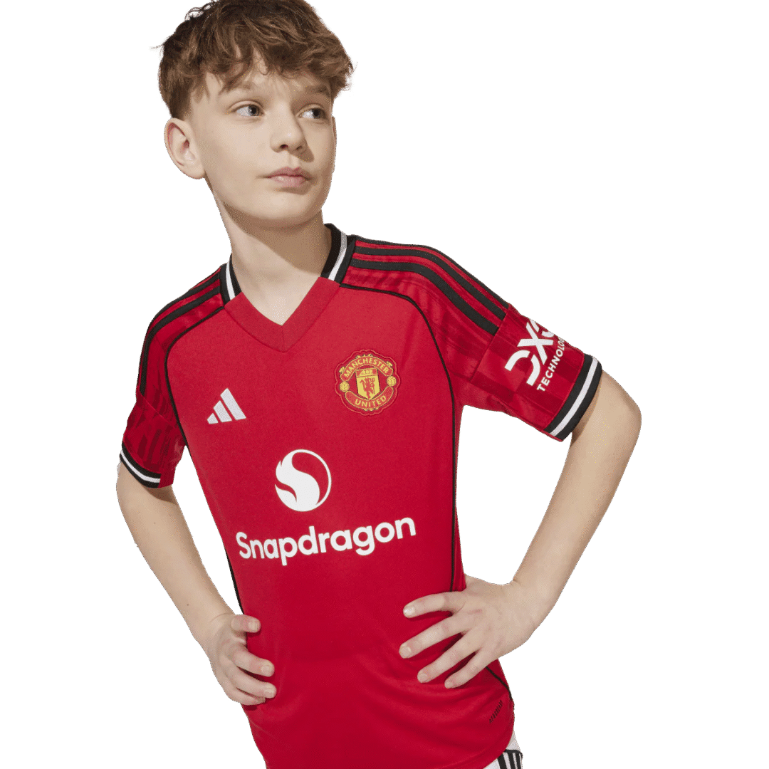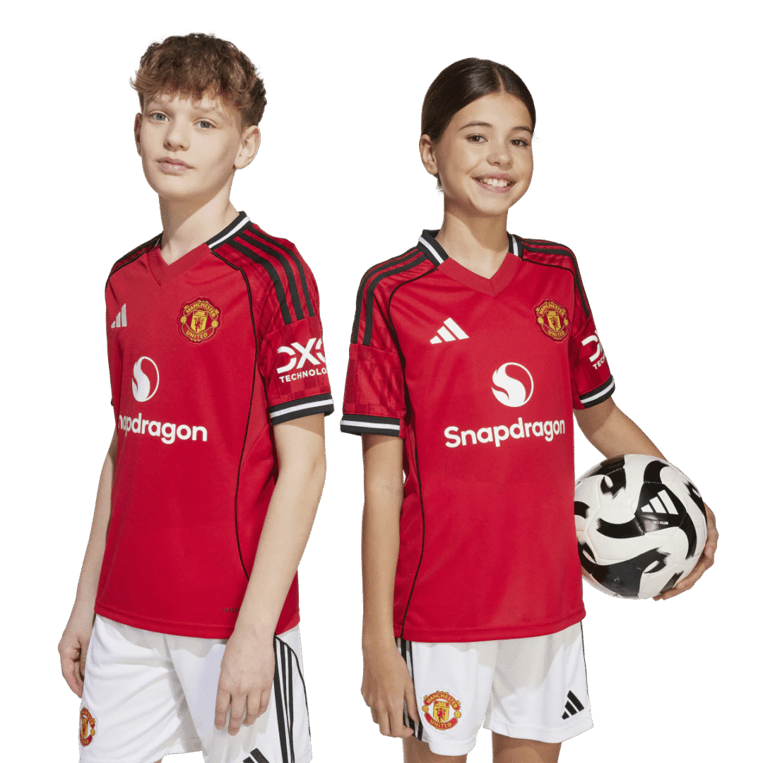 Official Manchester United home jersey for youth, designed for the 2025/26 season. Lightweight, breathable, and perfect for young fans or players who want to show their support on and off the field.