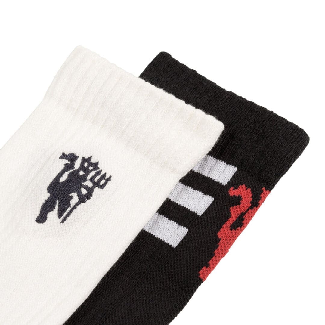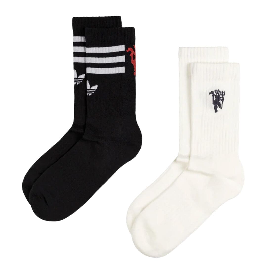 With two pairs included, you can mix and match your look to suit your outfit. One design draws inspiration from the 2024/25 Manchester United third kit, with a clean Off White base and modernised devil club crest, and the other features the iconic adidas Three-Stripes, a timeless Trefoil logo, and a versatile black and white colour scheme to easily complement whatever you’re wearing.
