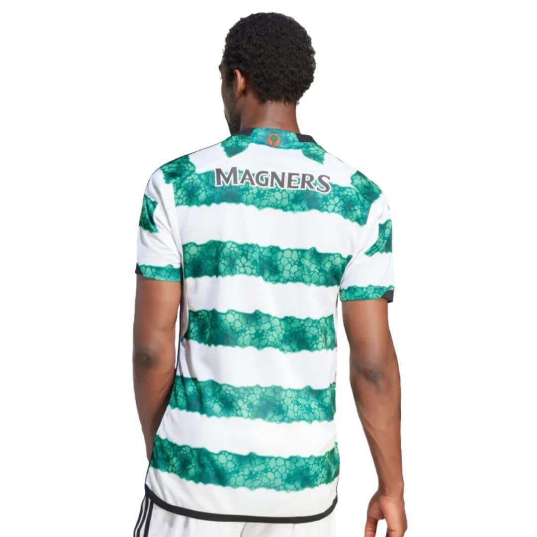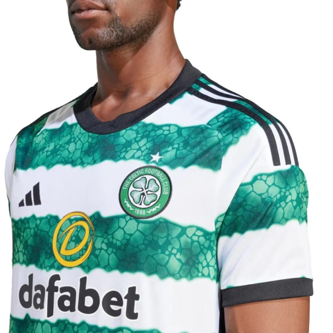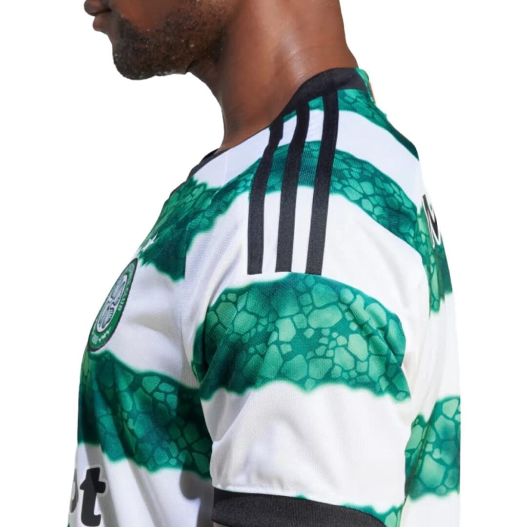 Now on show inside the stadium, that intricate glass paneling inspired the disruptive design of the hoops on this adidas home jersey. Keeping you comfortable with moisture-wicking AEROREADY, this shirt casts light on your soccer passion with an embroidered badge and Celtic cross signoff.Made with 100% recycled materials, this product represents just one of our solutions to help end plastic waste.