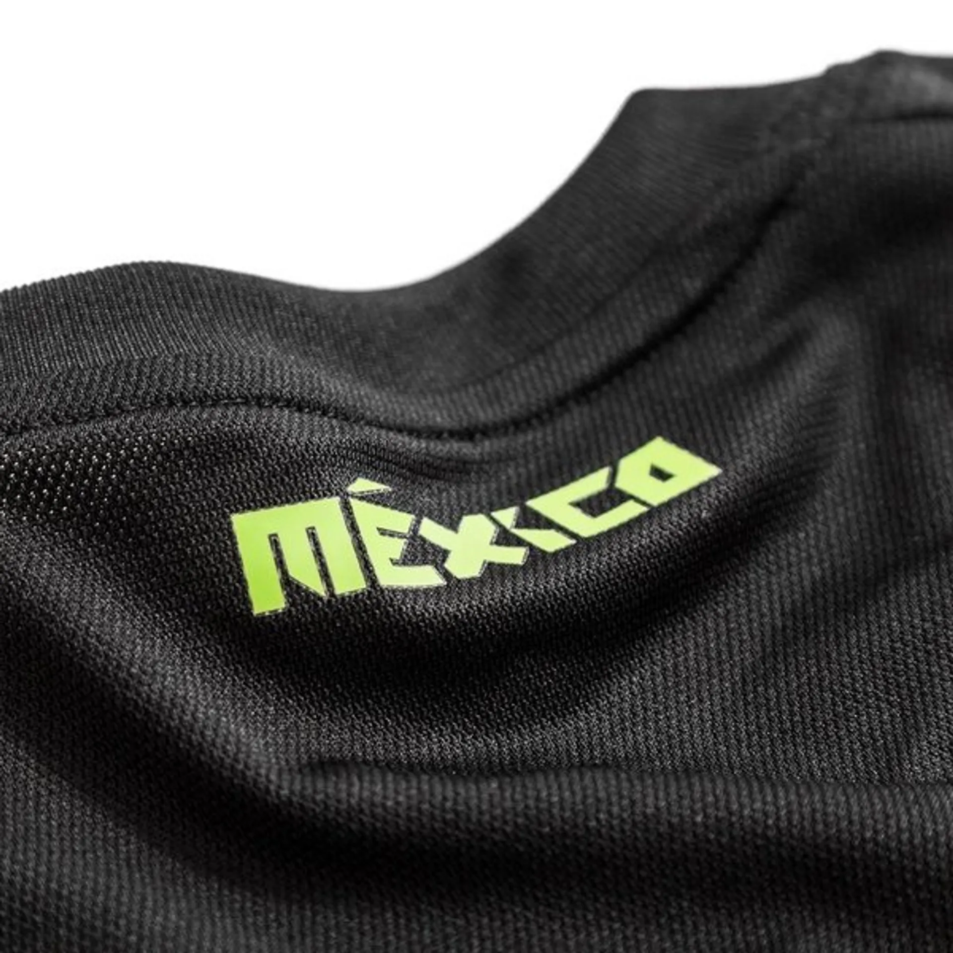 Designed for performance and everyday wear, it features short sleeves with open hems for natural movement and airflow. The breathable “Mexico” lettering on the back adds a distinctive finishing touch, while the flag-inspired details across the design reinforce national pride.