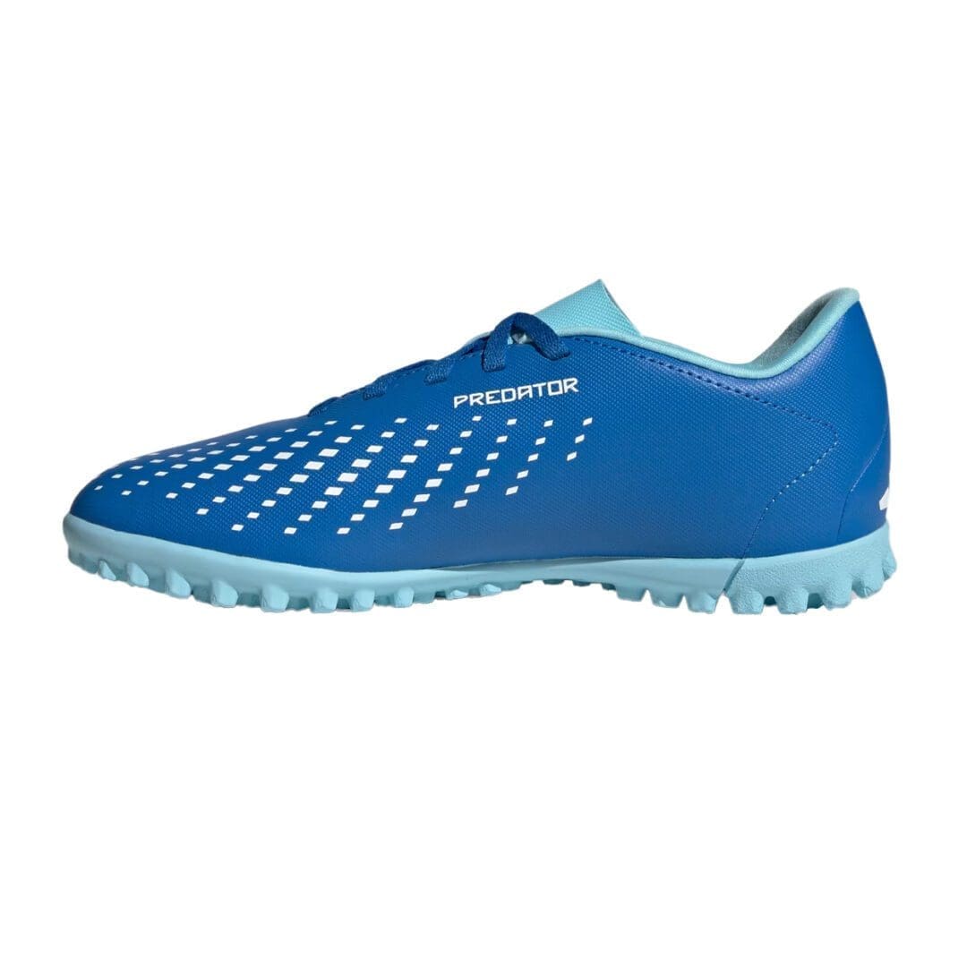 The fun is choosing the way to get there. The comfortable synthetic upper of these kids’ soccer shoes has a slightly textured finish. The studded rubber outsole maintains control on artificial synthetic grass courts.