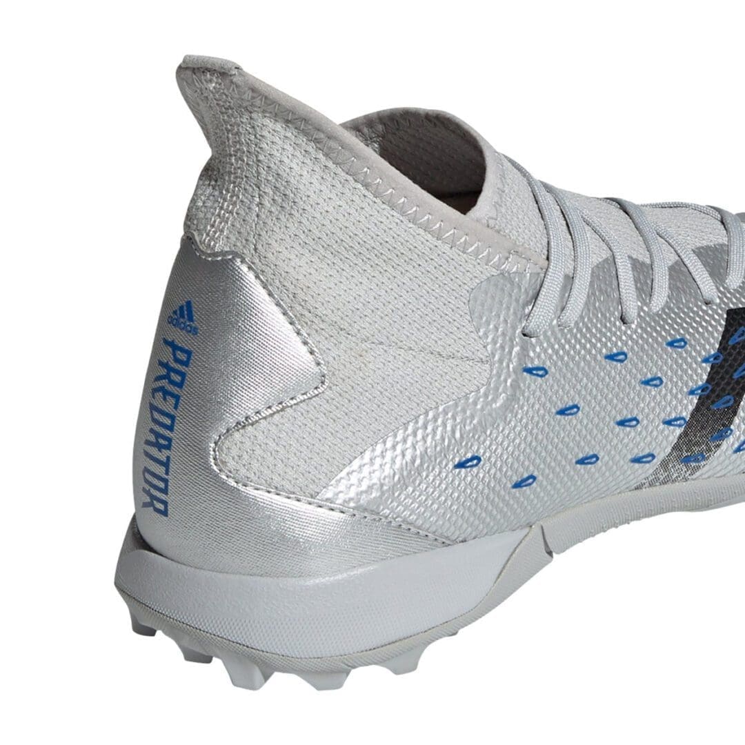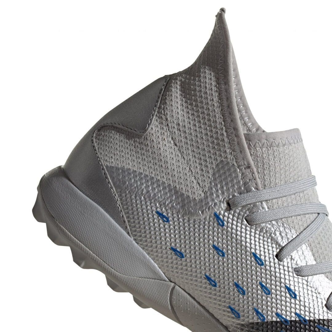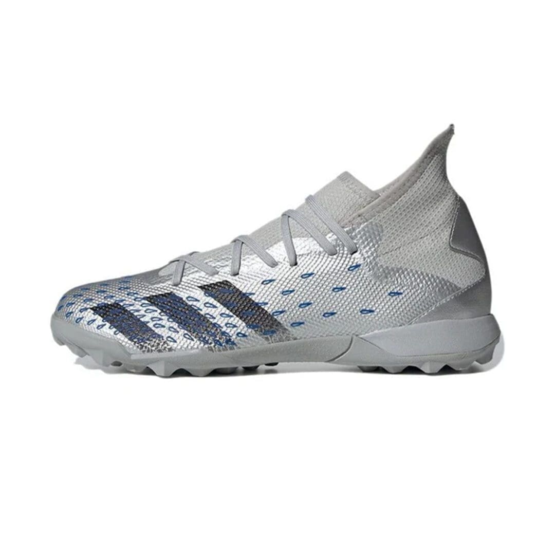 Jump onto the field with the Adidas Predator Freak .3 TF Soccer Shoes that will give you the security you need to perform like a star in any position. All-gray design with Demonscale details in blue and the classic three stripes shown in black on both sides.