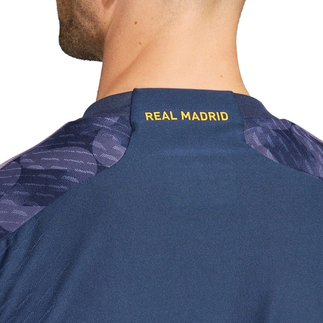 - Real Madrid heat-applied crest and “Real Madrid” on back collar
