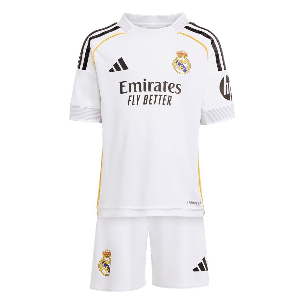 Get your little one ready to cheer like a champion with this Real Madrid home toddler mini kit from the 25/26 season. Designed for comfort, style, and club pride, this set includes both the home jersey and matching shorts. It’s a scaled-down version of what the players wear on the pitch—made for young fans who want to show their support early on. The lightweight materials help keep toddlers cool during play, while the soft fabric ensures comfort throughout the day.