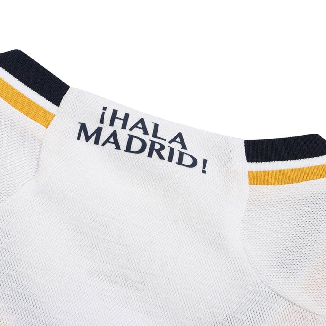 Dressed in their classic white colors and finished in gold details, it displays a “¡Hala Madrid!” signoff on the back neck. Moisture-wicking AEROREADY ensures you feel as assured as you look while you shout your support.Made with 100% recycled materials, this product represents just one of our solutions to help end plastic waste.