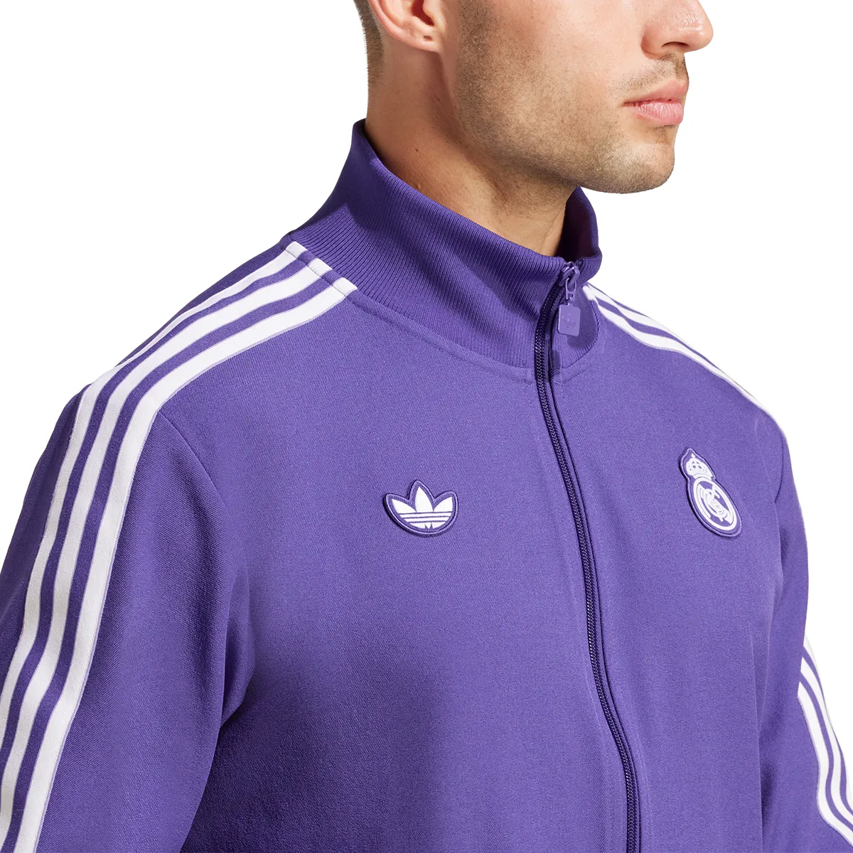 Born from a soccer fashion revolution. This Real Madrid track top pays tribute to the '80s terrace culture that took Europe by storm. From its heritage adidas silhouette to that woven label, it makes a real statement. The streamlined fit stays out of your way when you're weaving through match day crowds. A sewn-on club crest ensures everyone knows who you back. This product is made with at least 70% recycled materials. By reusing materials that have already been created, we help to reduce waste and our reliance on finite resources and reduce the footprint of the products we make.