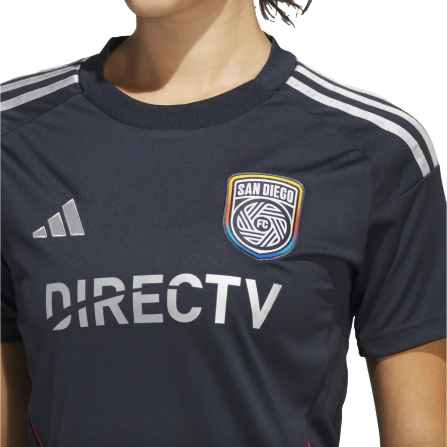 Find your soccer flow in San Diego FC’s first-ever home shirt, created by adidas. With pops of color inspired by the club’s crest and a “State of Flow” signoff, this jersey is built for comfortable support. AEROREADY and mesh inserts ensure you stay dry and cool when you’re watching the big game. An embroidered crest shows your loyalty. This product is made with 100% recycled materials. By reusing materials that have already been created, we help to reduce waste and our reliance on finite resources and reduce the footprint of the products we make.