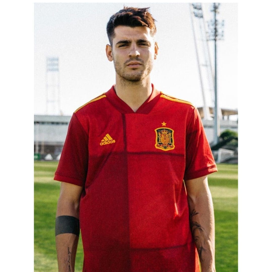 It is made of a breathable technical fabric that promotes ventilation and keeps the skin dry. Its design in red and burgundy tones is inspired by the Spanish flag. It shows off an abstract print with a pixelated finish that evokes the bustling streets and soccer culture of Spain.