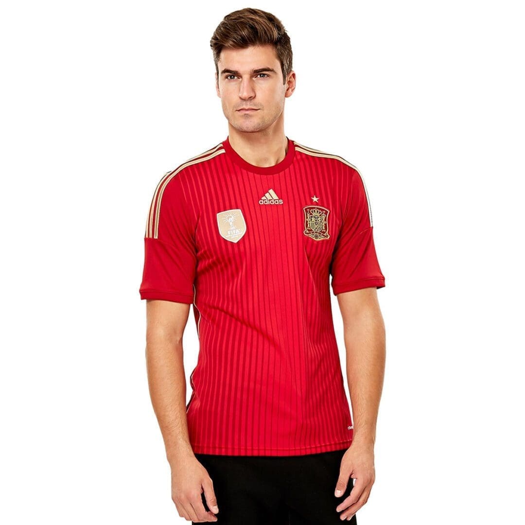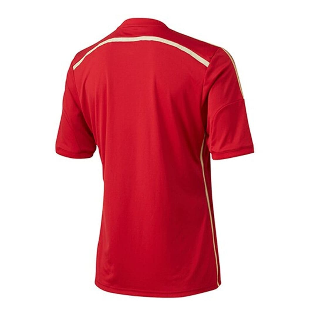 Home shirt as worn in the 2014 World Cup where Spain were looking to defend their World Cup title, however they failed to defend their title and could not manage to make it out of their group, finishing 3rd behind the Netherlands and Chile after losing 5-1 and 2-0 respectively against the two nations.