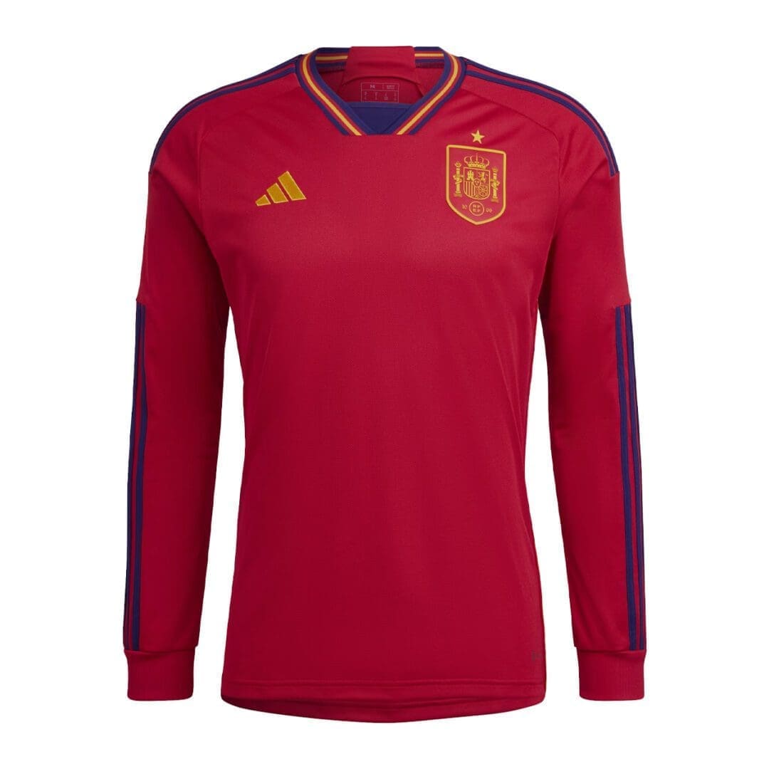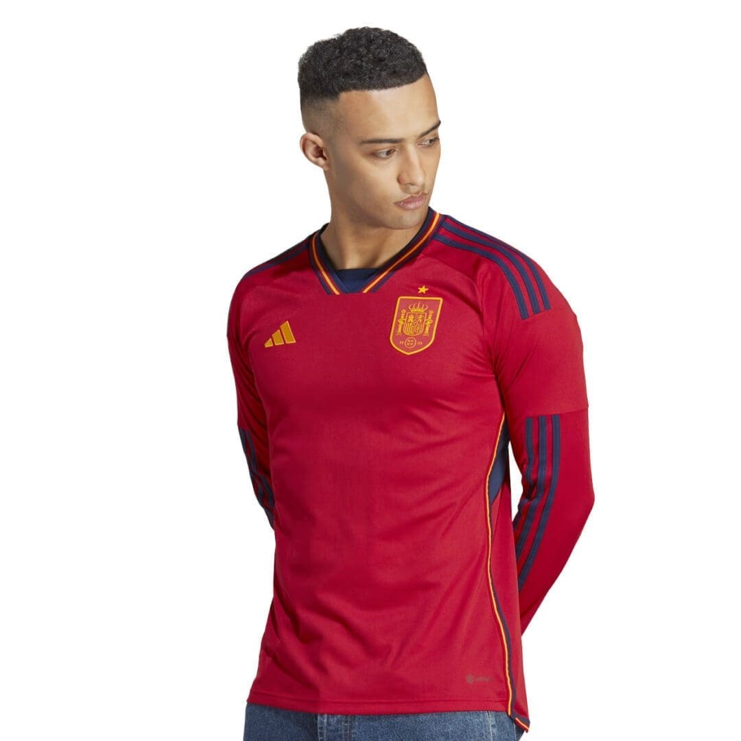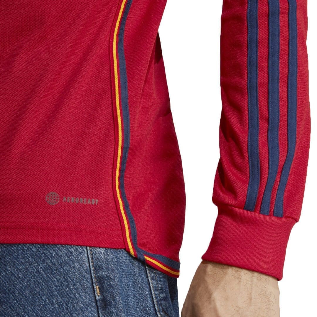 On the chest, woven versions of Spain’s updated team badge and adidas’ 3 Bar Logo stand proud. Under the surface, moisture-wicking AEROREADY keeps fans comfortable as they follow the action on the biggest soccer stage of all.