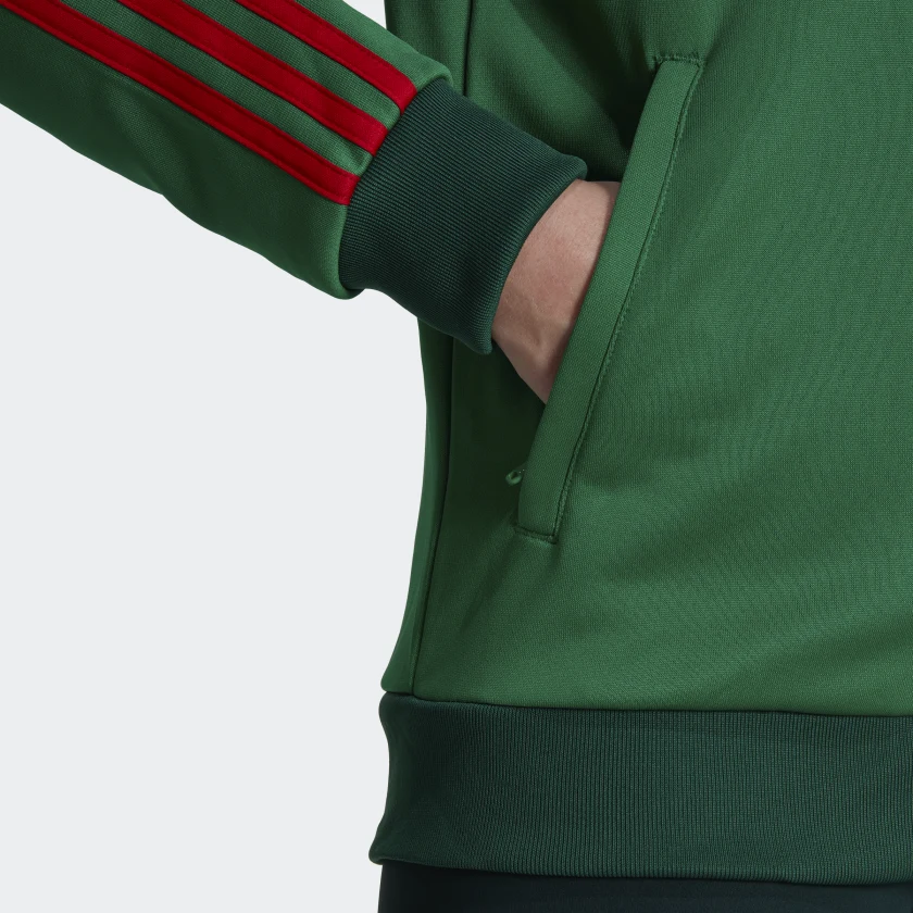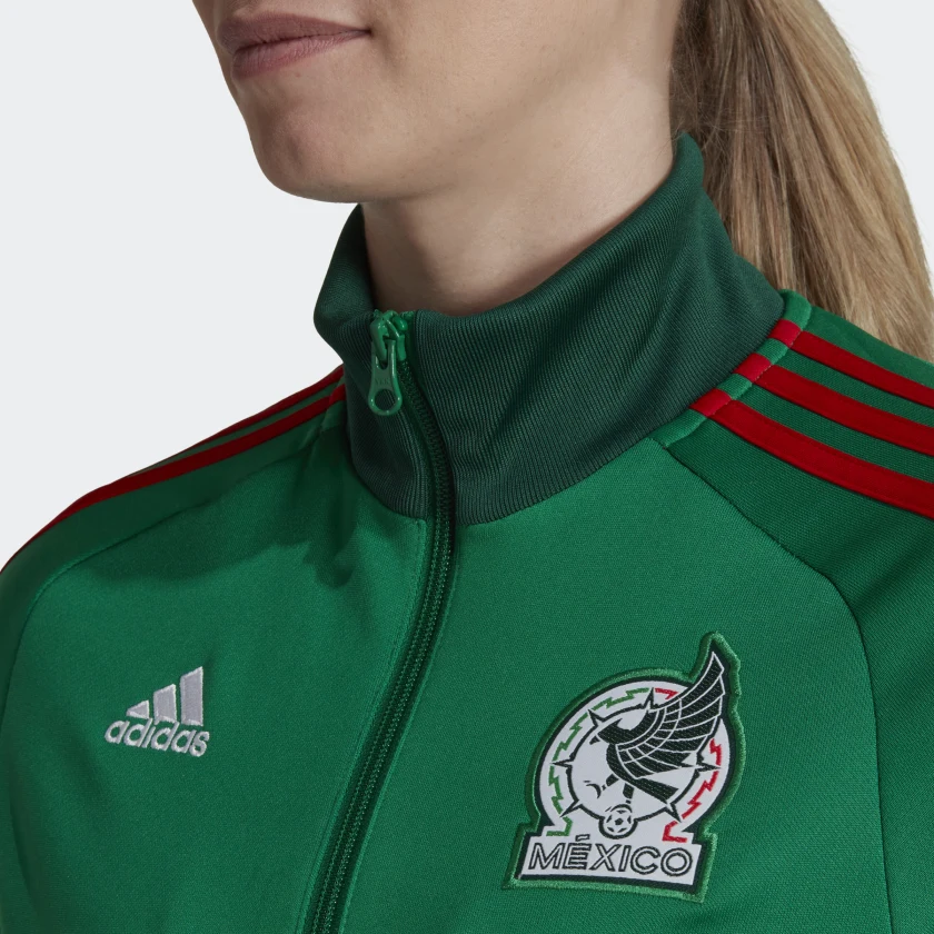 Body and spirit, Mexico fans stand behind their team through every challenge. Zip up this adidas soccer track top to show your support. Woven onto its soft fabric, the team's new badge symbolizes soaring pride when everything's on the line. Ribbing on the stand-up collar, cuffs and hem create a classic look and feel.