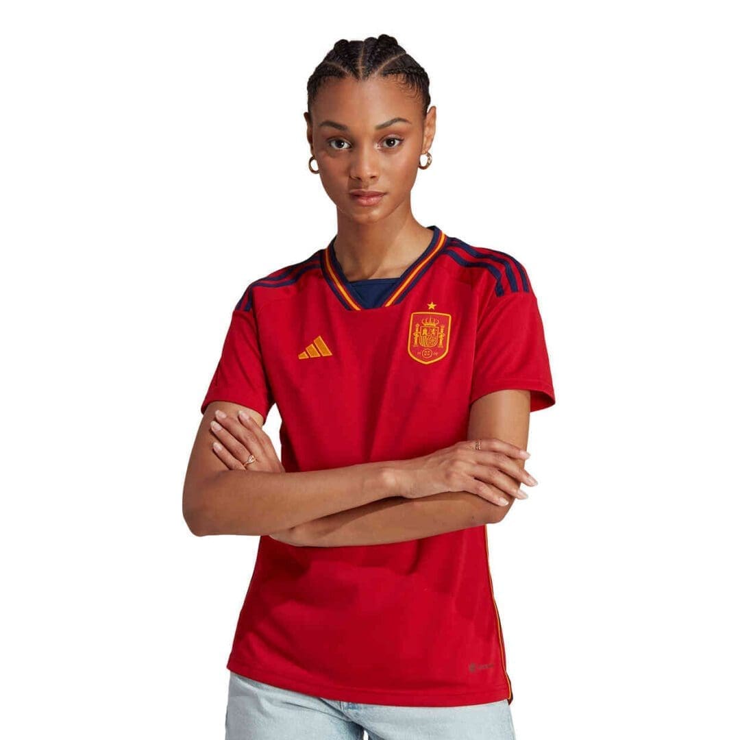 On the chest, woven versions of Spain’s updated team badge and adidas’ 3 Bar Logo stand proud. Under the surface, moisture-wicking AEROREADY keeps fans comfortable as they follow the action on the biggest soccer stage of all.