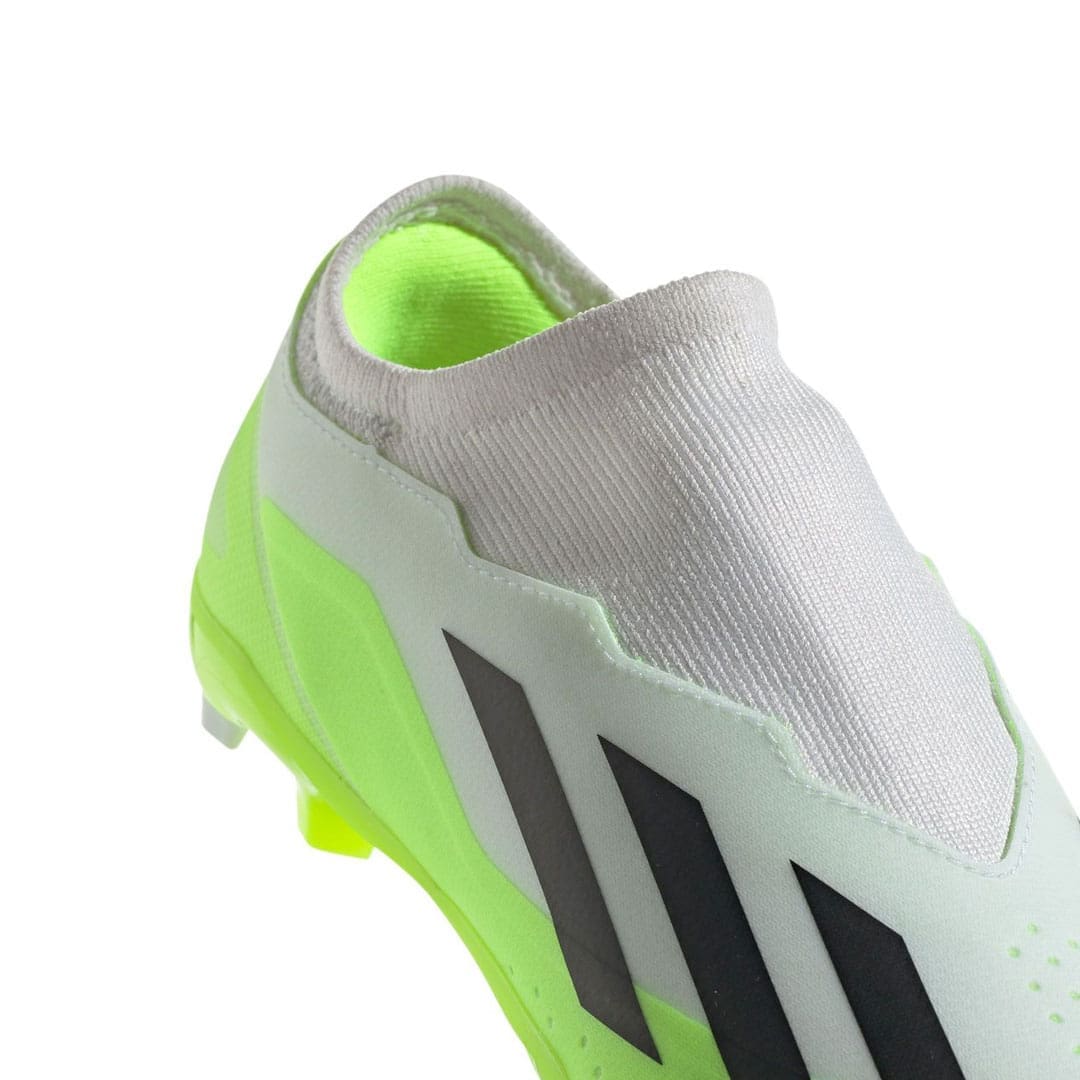 These cleats have a firm ground outsole that give you great traction so you can make those fast movements confidently. A flat-knit collar gives you a secure fit and feel while Laceless design increasing the striking zone and makes for cleaner cleat-to-ball contact.