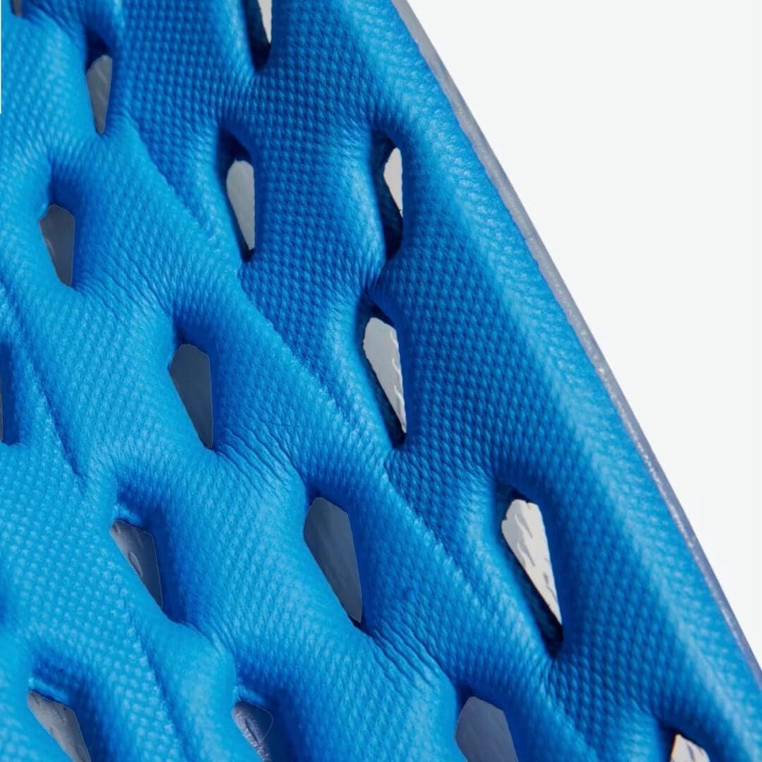 These soccer shin guards are crucial for match play, constructed from durable yet lightweight plastic. Their asymmetrical design ensures a snug fit on the lower legs, supported by a secure compression sleeve to maintain stability during intense gameplay. Made in part with recycled content generated from production waste and post-consumer household waste to avoid the larger environmental impact of producing virgin content. Contains a minimum of 25% recycled content