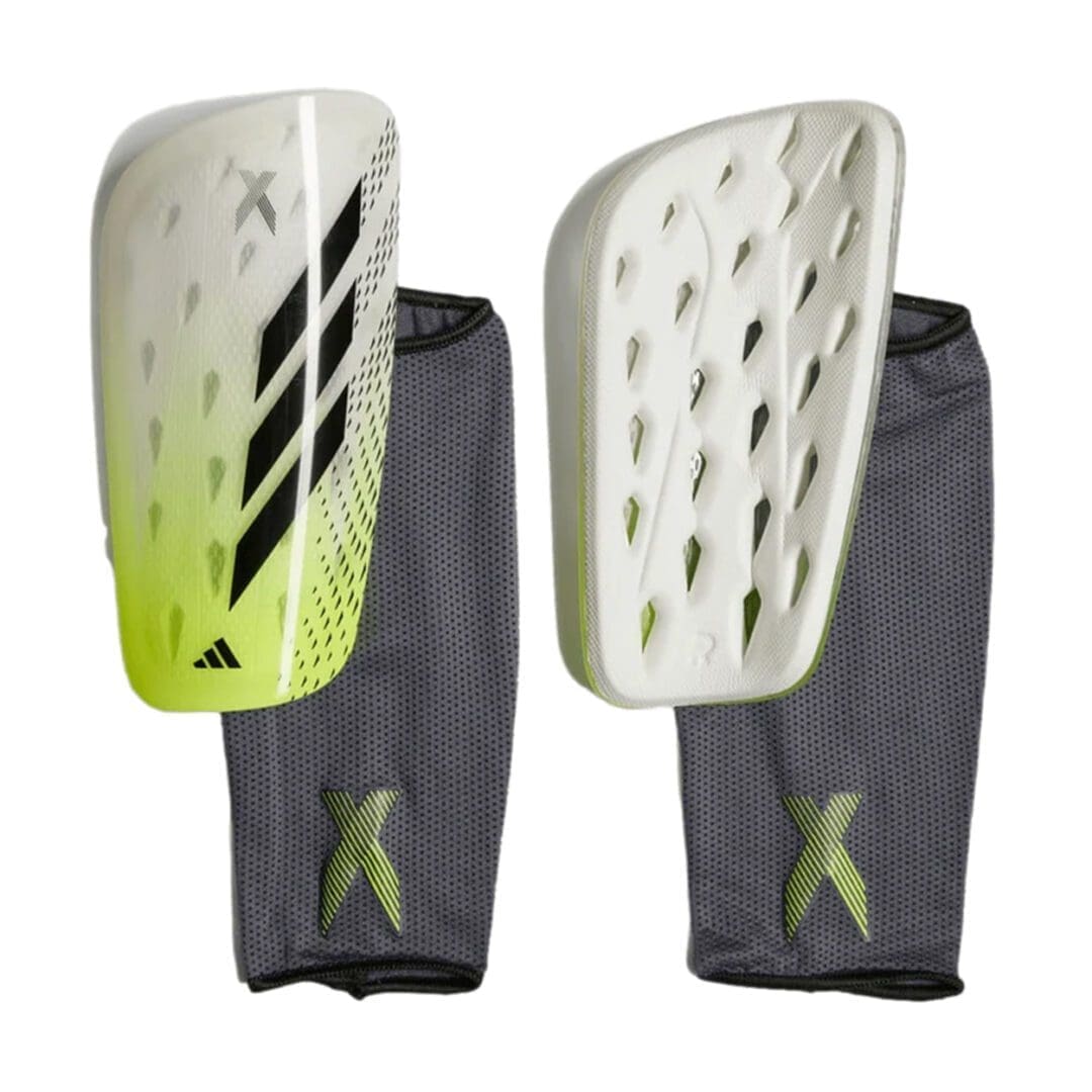 Elevate your game with the adidas X Soccer Shin Guards, designed for optimal performance and comfort. Part of the adidas X family, these shin guards feature lightweight shields with an asymmetrical profile for a snug fit. The stretchy compression sleeves ensure they stay securely in place during fast-paced matches. Perforated cushioning on the back enhances breathability and absorbs impacts, keeping you comfortable and protected throughout the game.