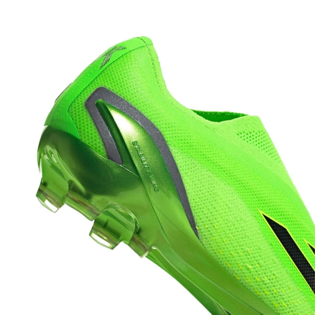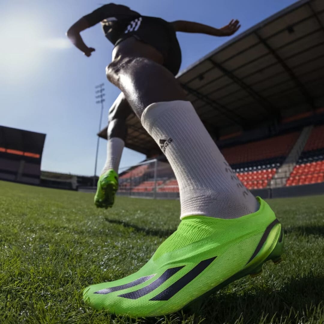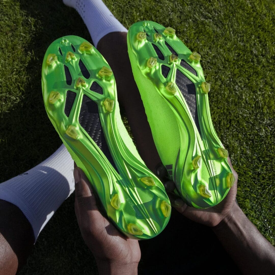 Sleek and super-comfortable, these soccer cleats support instant reactions with a springy, full-length Carbitex carbon plate on their firm ground outsole. The laceless, foot-hugging adidas PRIMEKNIT upper includes EVA inserts on the inside and a lightweight carbon heel lock on the outside to keep you stable during light-speed play.
