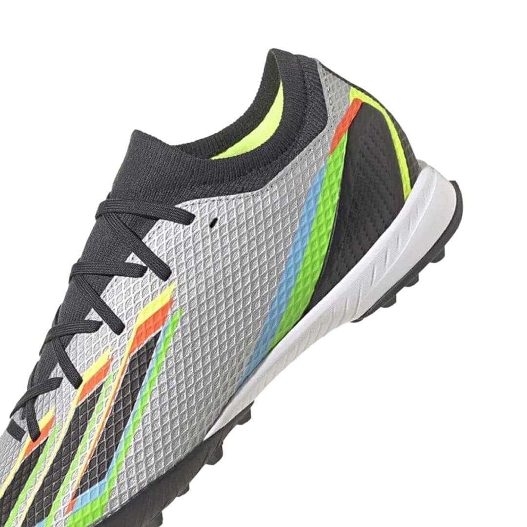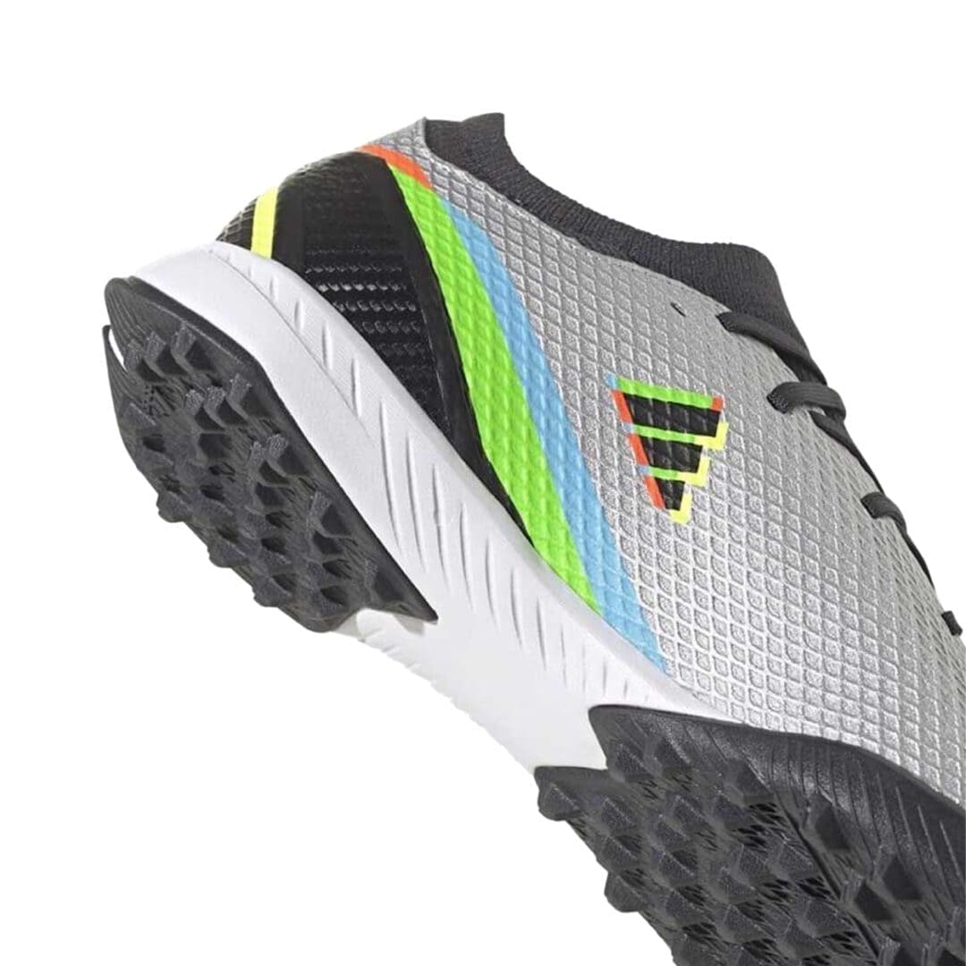 The lug rubber outsole on these soccer shoes keeps you quick on artificial turf while an EVA midsole cushions every step. Up top, the soft, coated textile upper includes a supportive flat-knit collar and rigid TPU external heel lock to keep you strapped in for blink-quick skills.