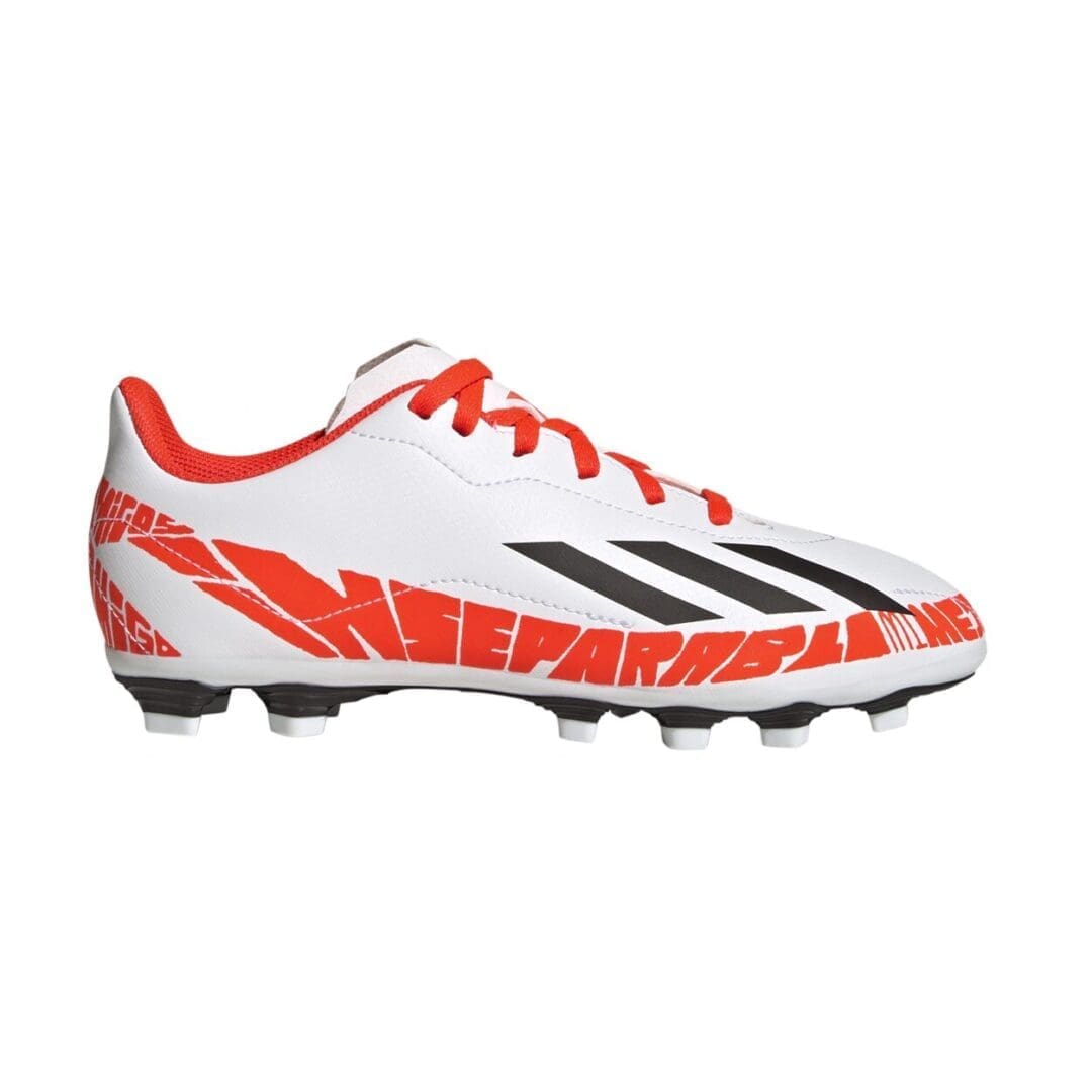 These juniors’ soccer cleats were created for quick cuts and match-turning speed on firm ground, hard ground and artificial grass. Soft and durable, their synthetic upper keeps you comfortable in top gear. Bold graphics highlight Lionel Messi’s lifelong love affair with the ball.