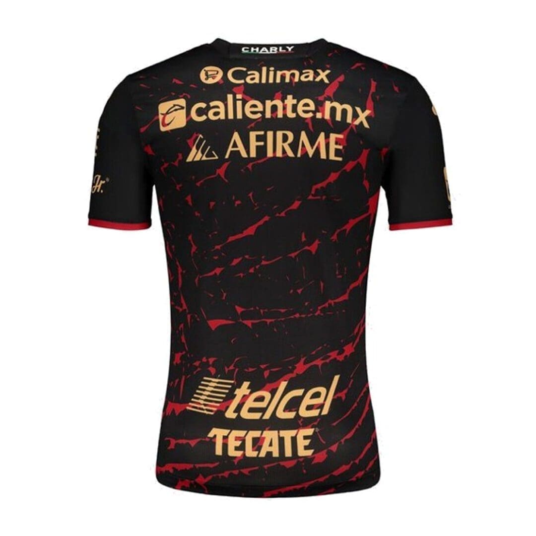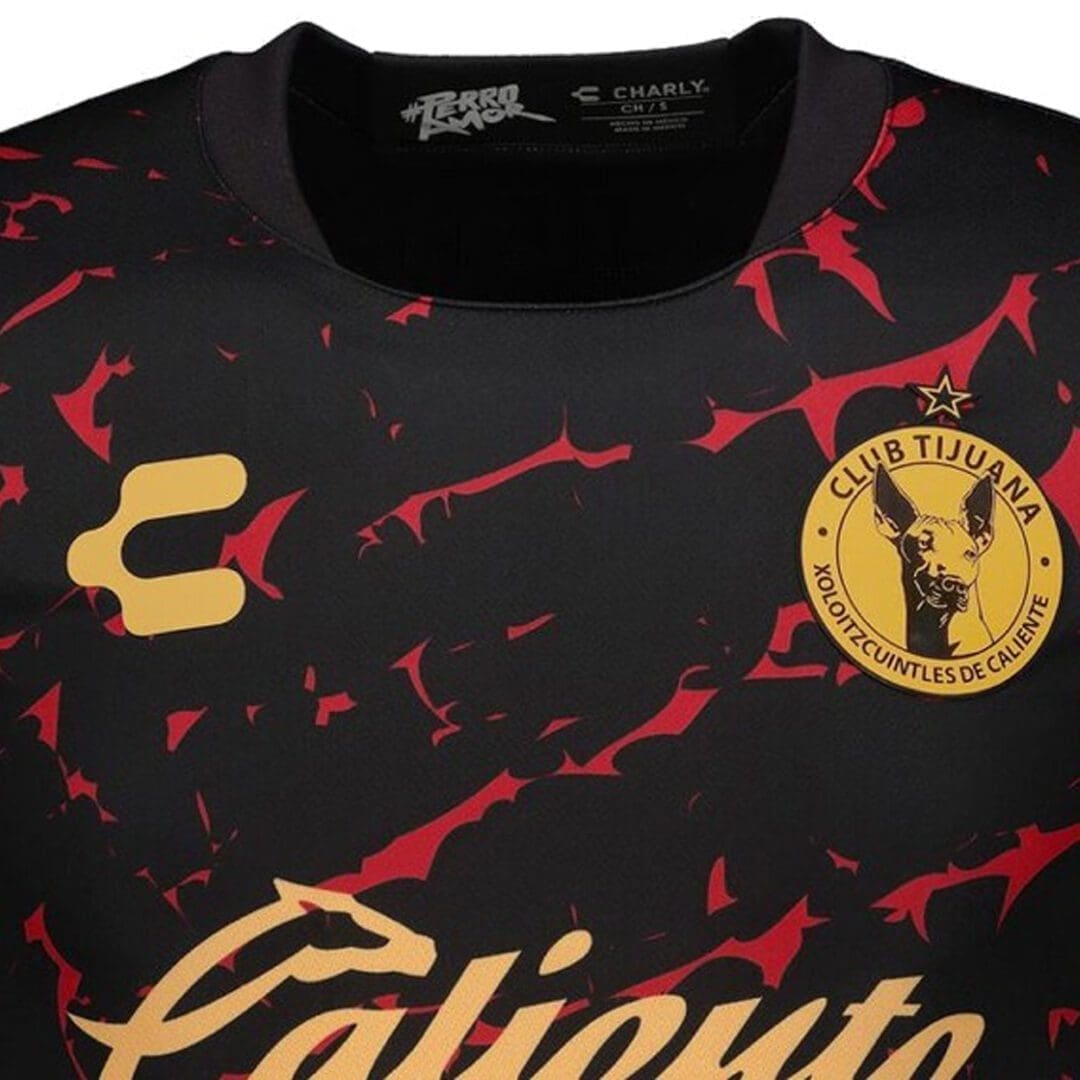 A jersey inspired by the skin and distinctive wrinkles part of the mythical Xoloitzcuintle, enhanced by vivid gold details that create a fascinating contrast in its silhouette, alluding to that first unforgettable title that La JaurÃa won 10 years ago.