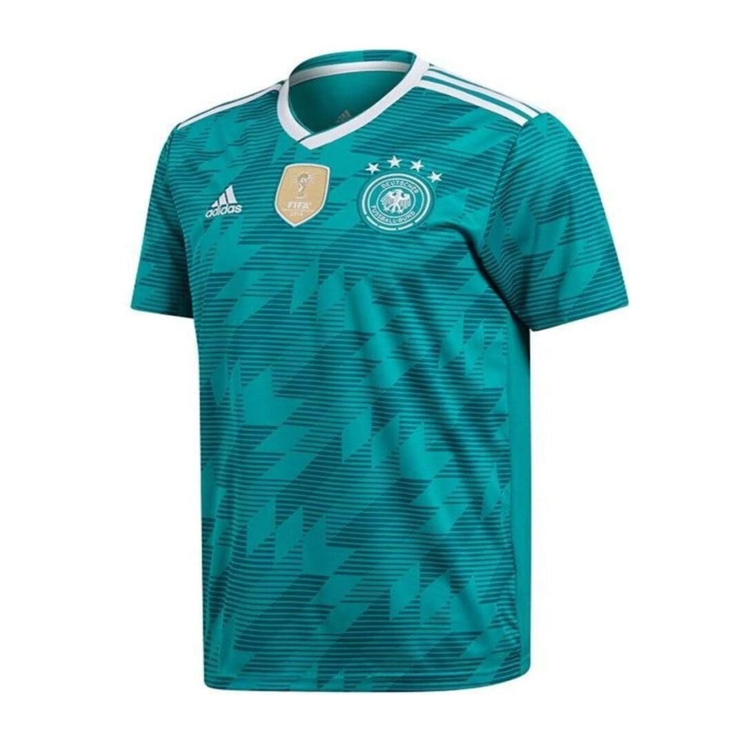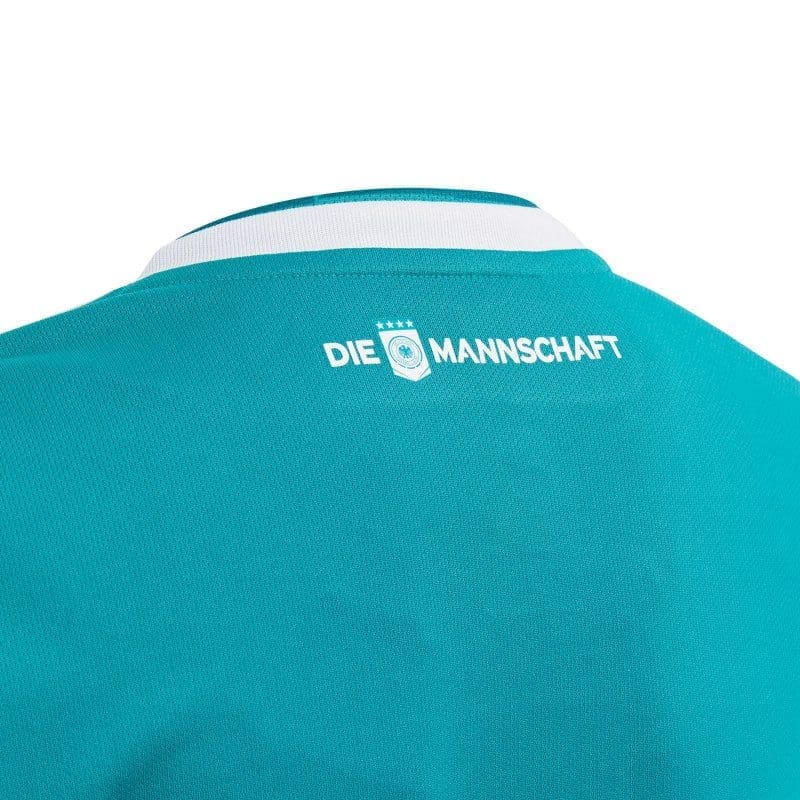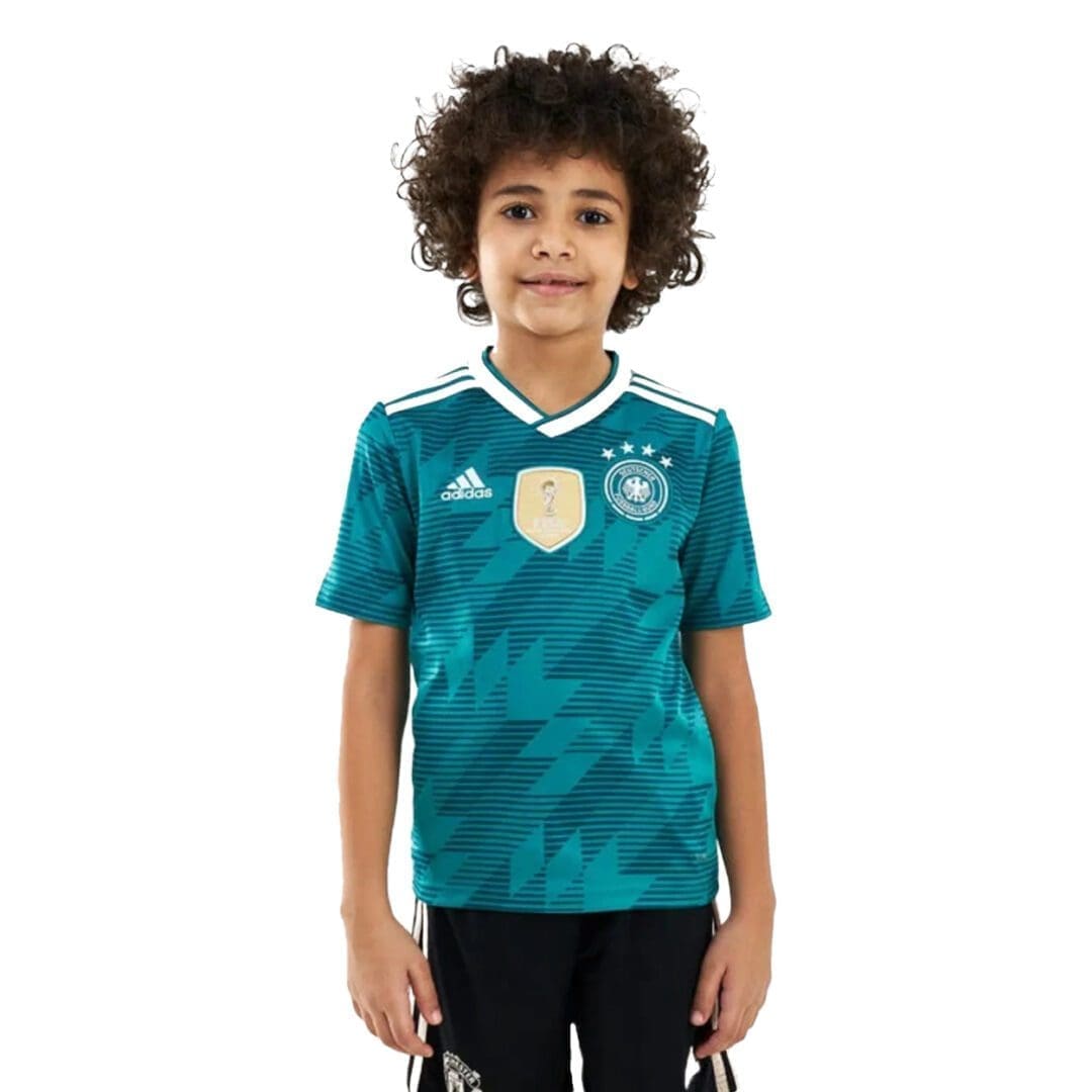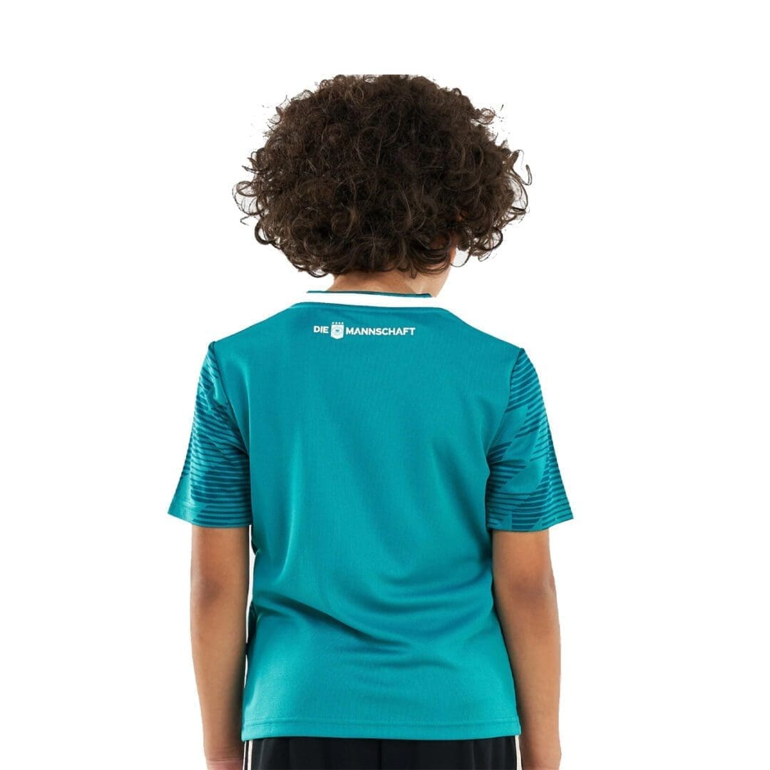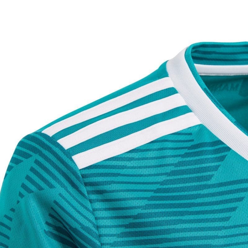 Inspired by the dynamic design worn on that famous night in Turin, this junior boys’ soccer jersey is a replica of the away shirt Germany’s current stars wear. Made with sweat-wicking fabric, it has a slightly looser cut and displays a woven team badge.