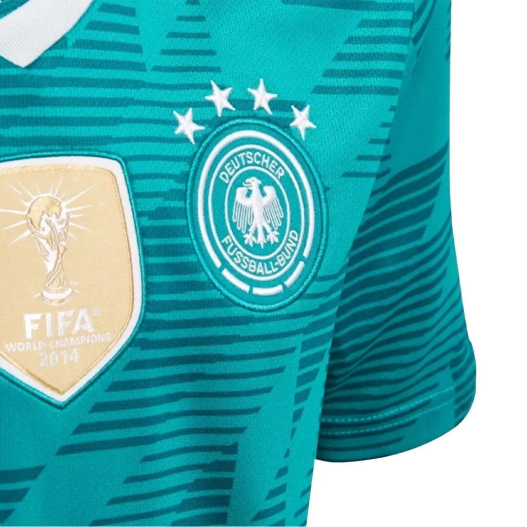 - Woven FIFA World Champions 2014 crest on chest; Heat-transfer “die Mannschaft” graphic below back neck