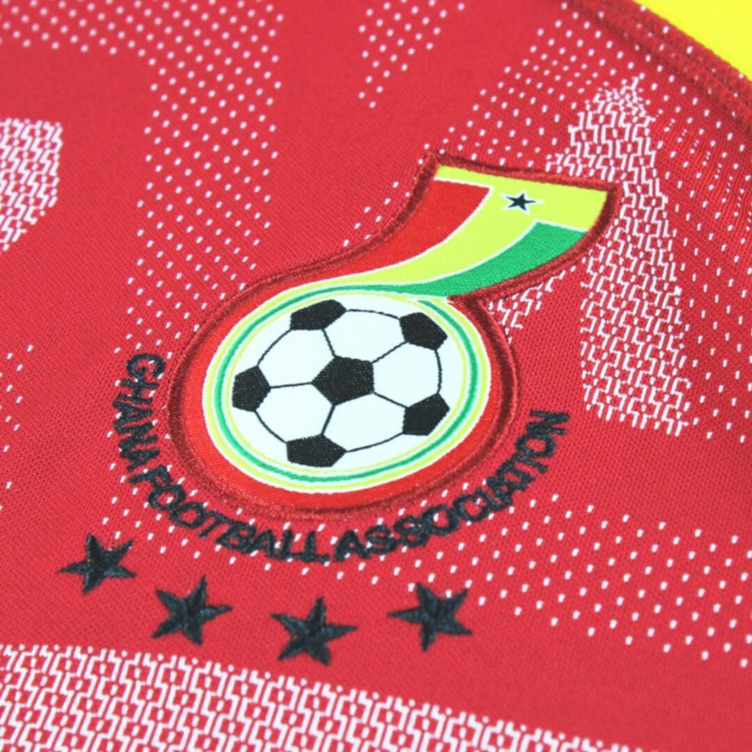 • Official Ghana Soccer Federation woven crest with embroidered outline at left chest