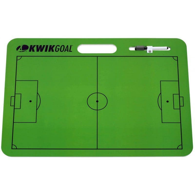Clean, simple, and exceptionally useful. This dry erase board is not one any coach should pass up – it is the perfect tool to add to your tactical arsenal. Help your players clearly visualize their on-field formation and game plan between halves or utilize this board during strategic practice sessions. Featuring a 24” H x 18” W display with a full-field diagram on one side and a 1/3 field diagram on the other, lightweight design and built-in carry handle – this board is perfect to take with you on-the-go. Includes a dry erase marker and eraser.