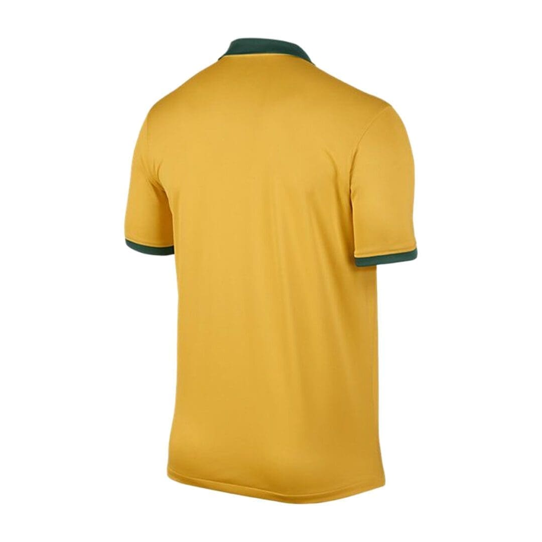 The Australia Home Shirt 2014 provides a comfortable fit thanks to the short sleeve design and classic V neck and fold over collar, whilst the Dri-Fit material helps to keep you cool and dry by wicking sweat away from the skin for easier evaporation. This mens football top proudly displays the Australia football club badge to the left of the chest and Nike Swoosh to the right. Mens football shirt. Short sleeve design.