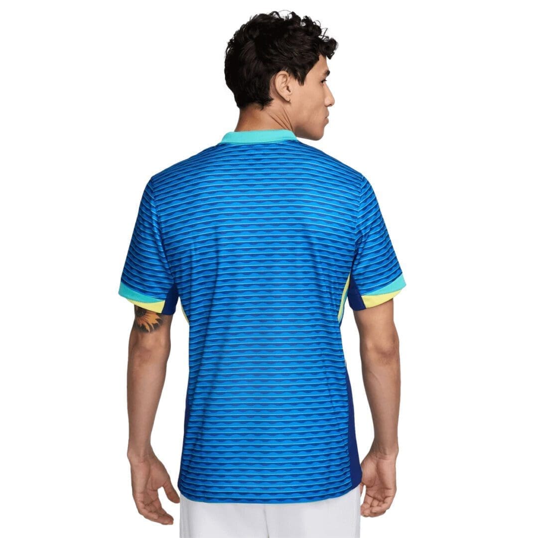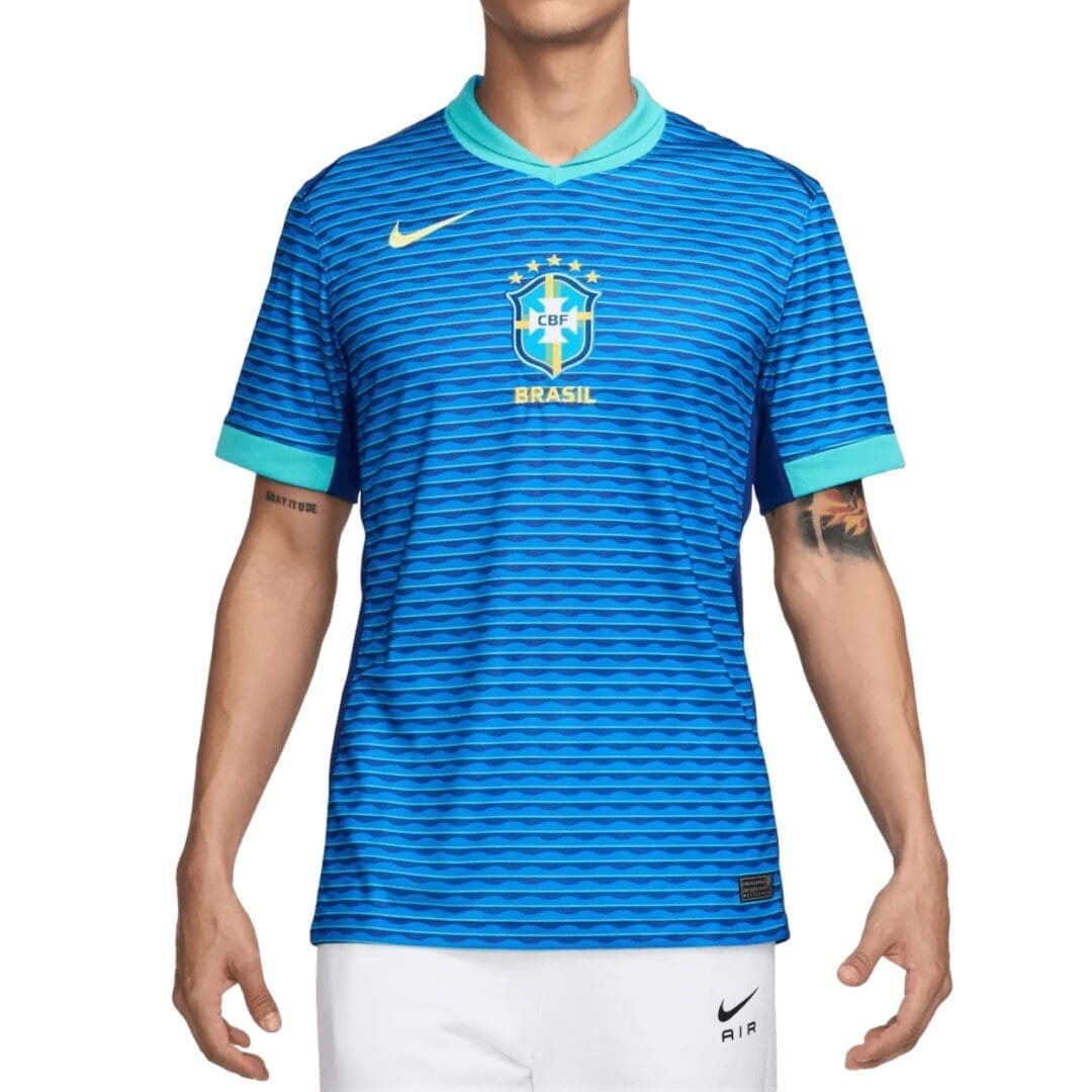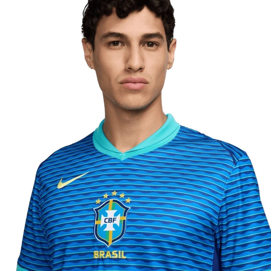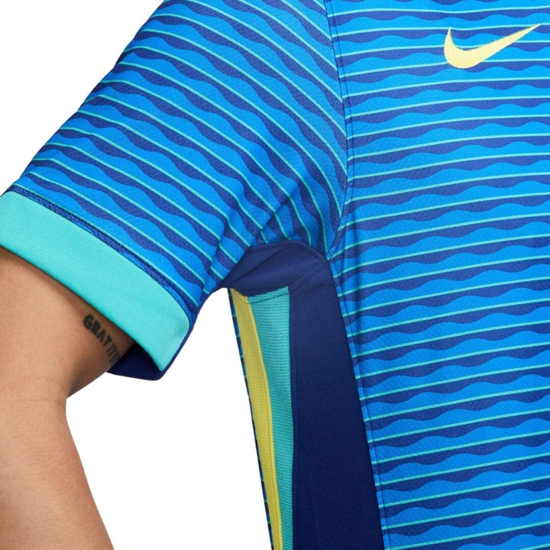 The Brazil 2024 Away kit honors the chaotic natural beauty found in its beaches and jungles. Its intricate allover print nods to the colors and shapes of the country’s coastlines. Look inside the jersey for a hidden detail celebrating national pride.