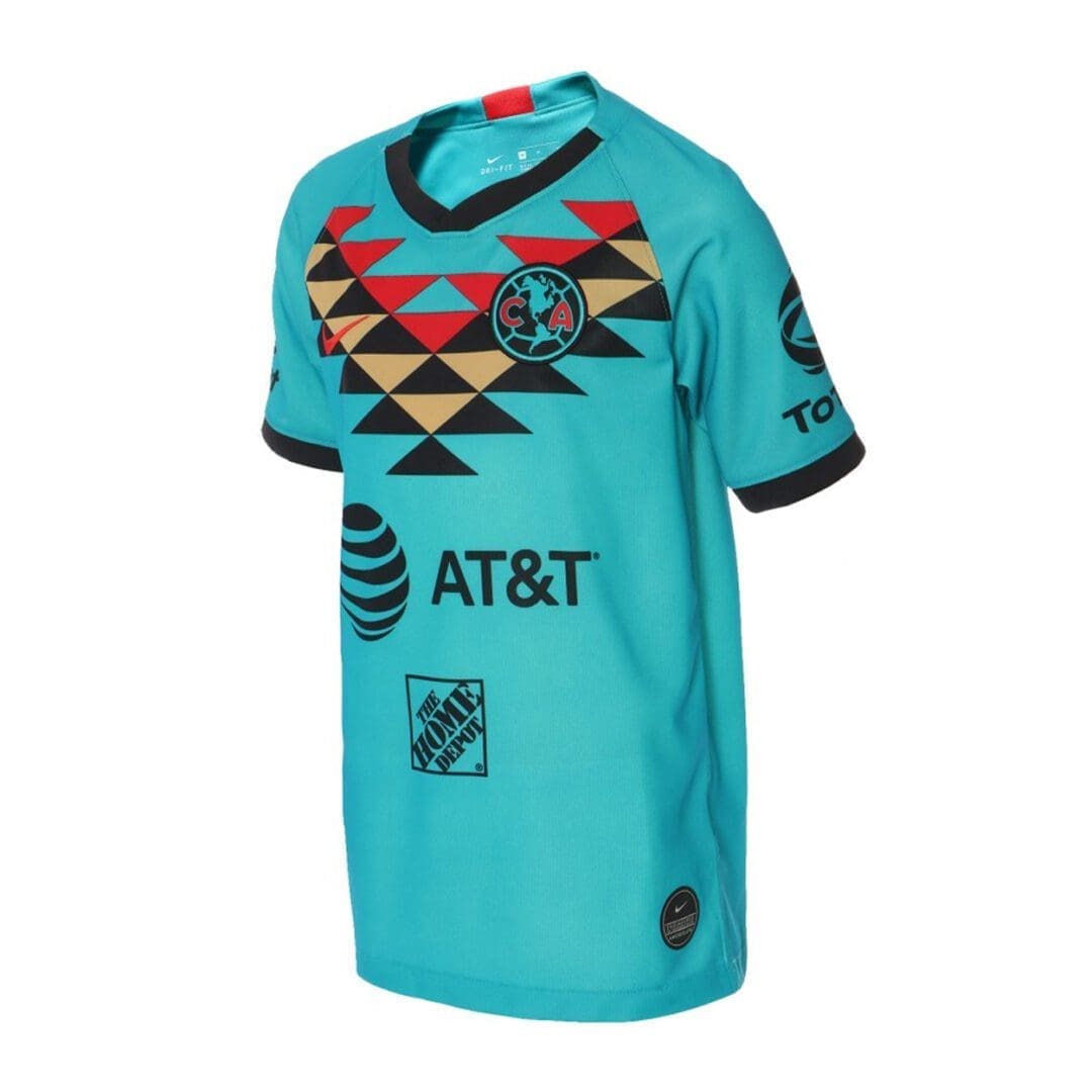 Inherit your children’s passion for the soccer team you love with the Nike Club América Tercero 19/20 Jersey, which is based on the turquoise color inspired by the color of the two-headed snake called Maquizcohuatl, emblem of the eagle warriors. of the Aztec culture.